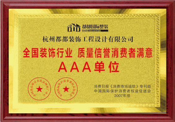 同年被中国质量诚信企业协会评为质量诚信双优单位、全国装饰行业质量信誉消费者满意AAAA级单位。