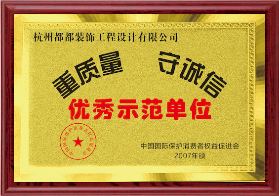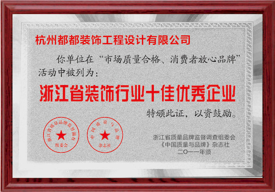 同年被浙江省质量品牌监察调查组委会评为“浙江省装饰行业十佳优秀企业”。