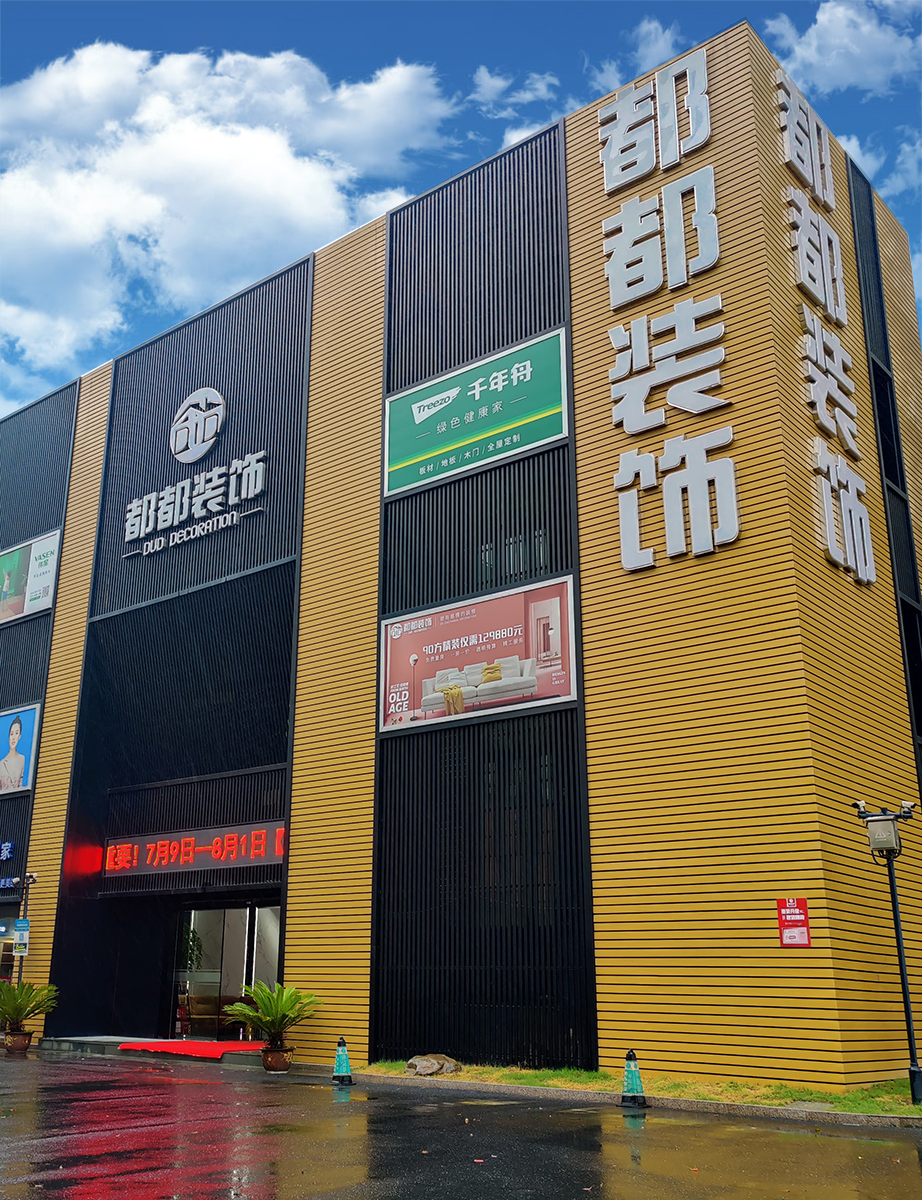 2015年,浙江都都装饰有限公司率先推出了颠覆性的家装行业服务模式——“家居整装新概念”,将硬装、软装、设计和施工团队首度糅合,全力打造整装三大核心产品:「舒适家」、「时尚家」、「尊贵家」。同期,建成整装产品「万方模拟体验馆」,建立完善的“三位一体”服务体系,提供“十对一”家装管家服务;落实售后质保体系“二十一项质量不满意砸无赦”。