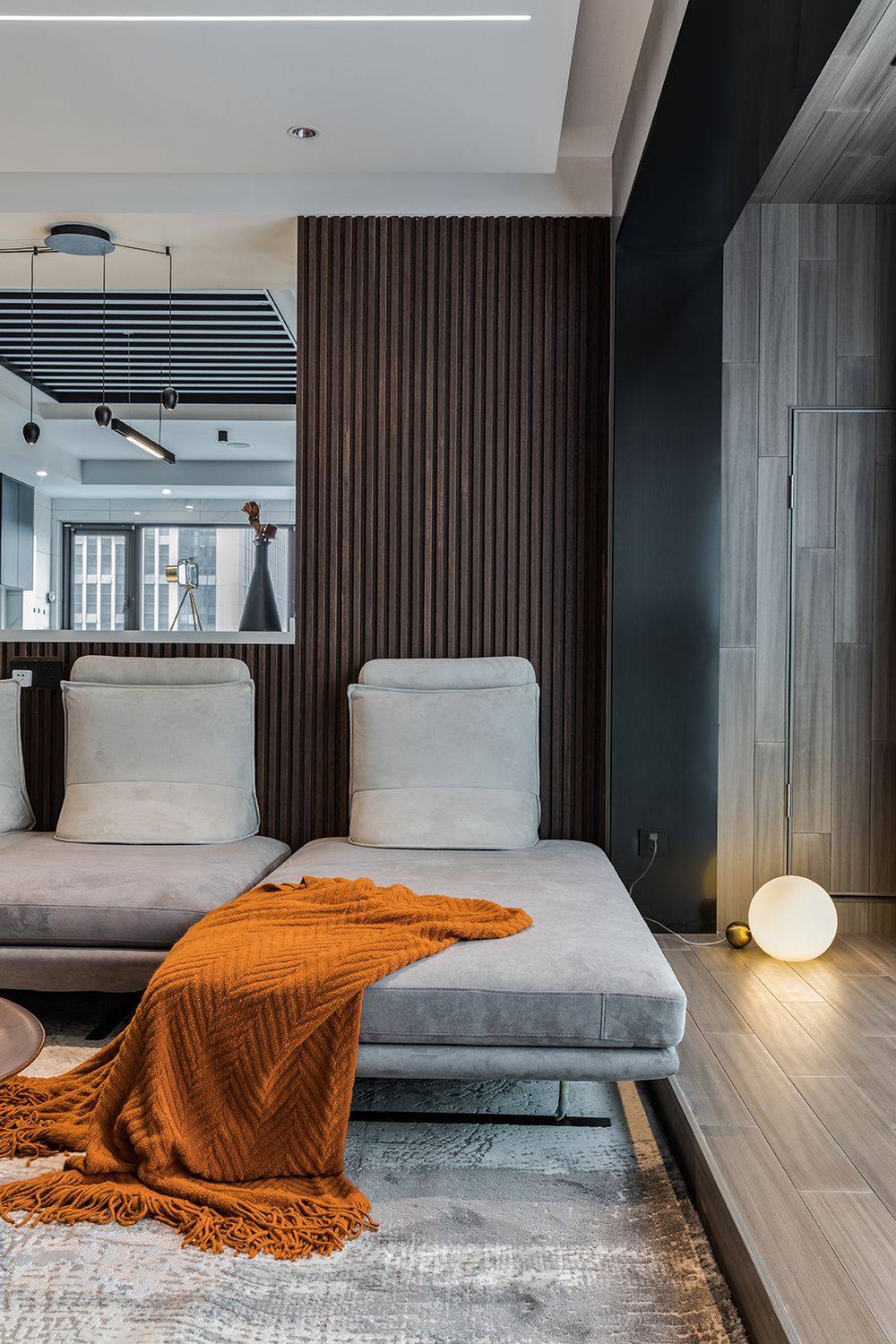 ▲ 木饰面自由地组织着空间,虚实结合、分而不隔,空间的关系明朗而又具有开放性。