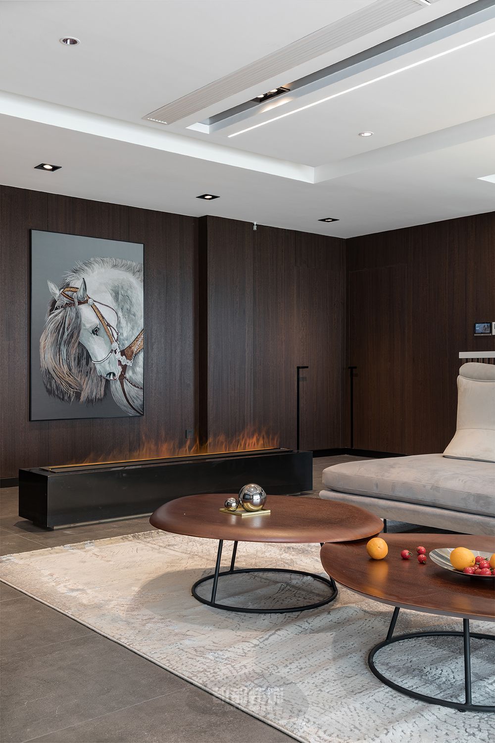氤氲的画面,配合灯光,隐约的情绪渗透于空间,使空间氛围感更强。