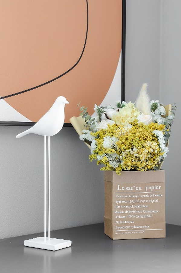 书桌前这幅画画面内容虽简洁明亮,却能从它几何拼接的图案中,柔和高级的配色中,窥见些许流年生活的禅意,平淡且珍贵。