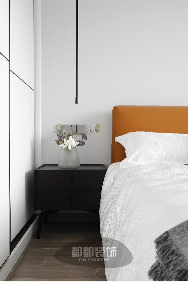 次卧空间局促,没有杂乱的设计,棕橘色的软包,在提升活跃度的同时,也将高级灰的低调优雅发挥到极致。