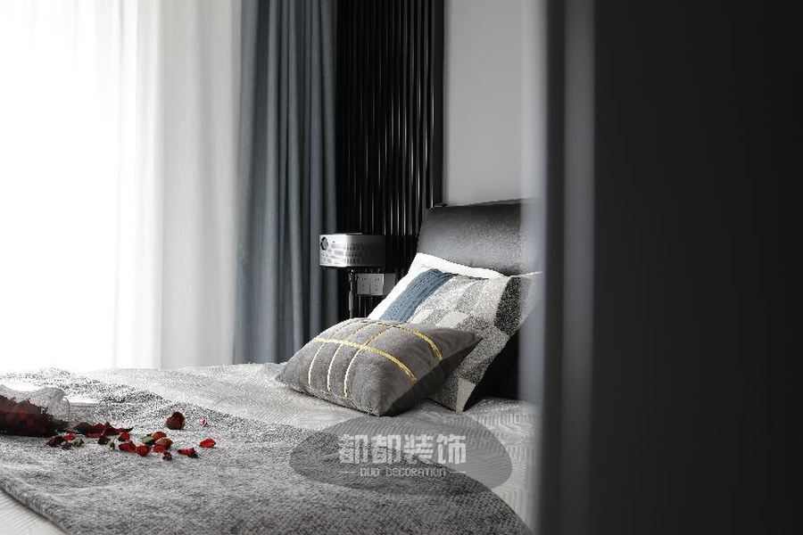 在床品的选择上,重在强调功能至上,让一切回归最纯粹的样子,多以柔软的布艺,舒适的软包为主;在摆件和灯饰的选择上,重在表现时尚和新奇感,选择简约而时尚的艺术品,传达出一种自在时尚的感觉。