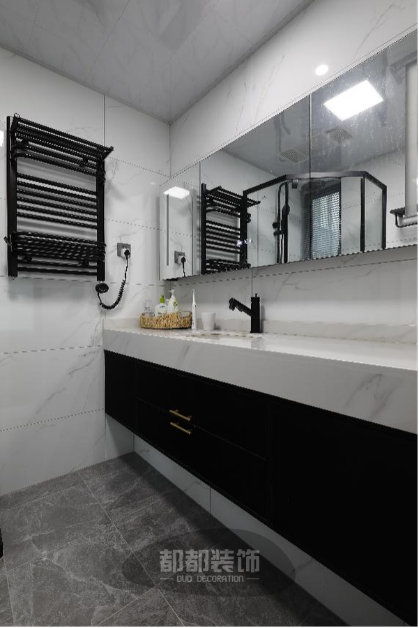 在小卫浴空间内,电热毛巾架上墙,不仅是收纳加分项,而且作为辅助取暖效果也一样优秀。