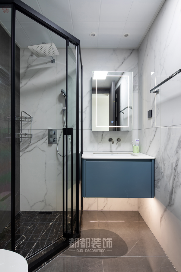主卧和次卧的卫生间均采用干湿分离,简单利落的黑白大理石、格调十足的浴柜,镜柜经典能装,给人带来眼前一亮的视觉效果。
