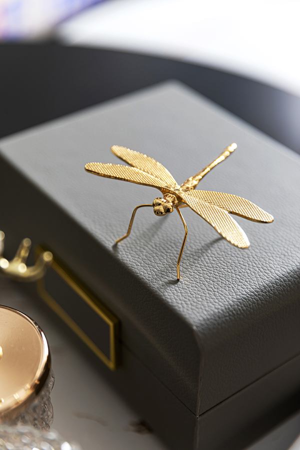 金属蜻蜓展翅欲飞,流畅线条勾勒出艺术感十足的......空间中随处可见的金属装饰品,诠释了现代轻奢风格的特性。