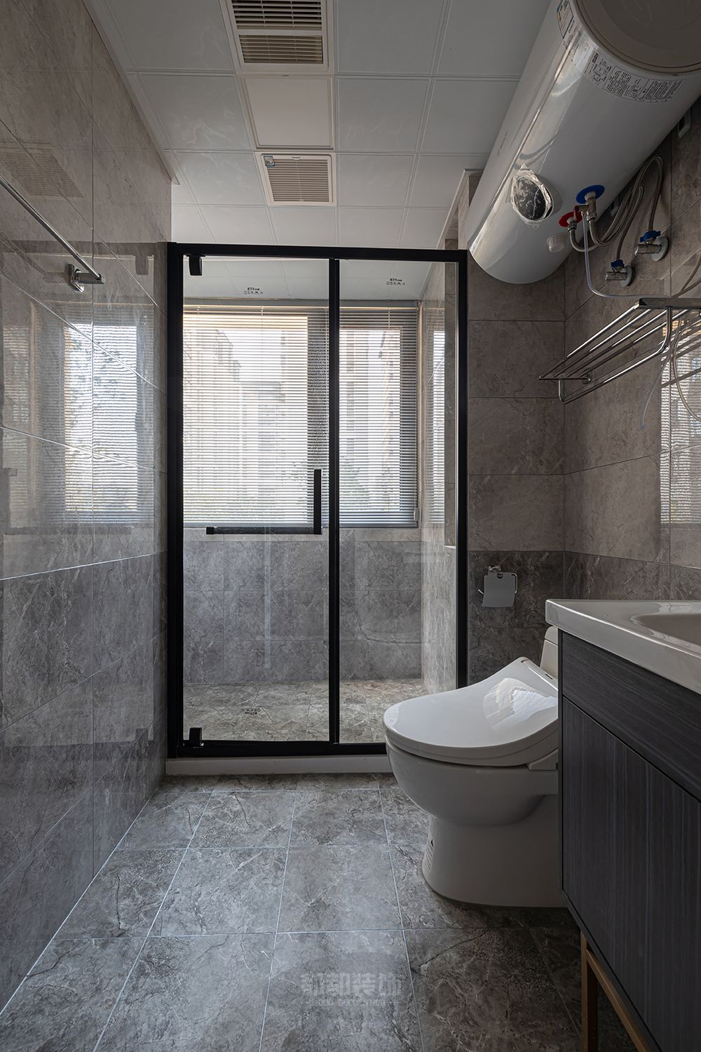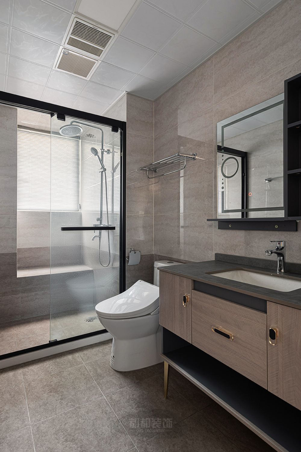 ▲卫浴的色调采用了比饱和灰色与米色,低调耐看,实现对空间区域最大利用化,也力求功用与美学的完美融合。