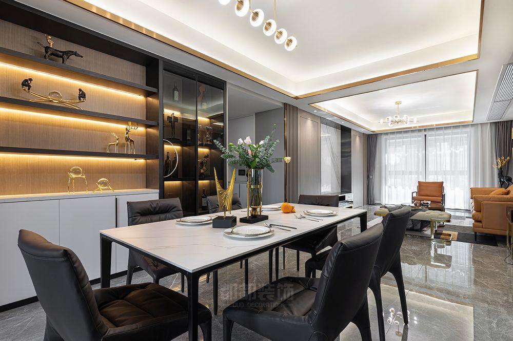 ▲连贯的餐厅,体现出了现代而雅致的格调,灯光的设计在强化空间的奢华气质之余,也给主人带来了高品质的生活享受。
