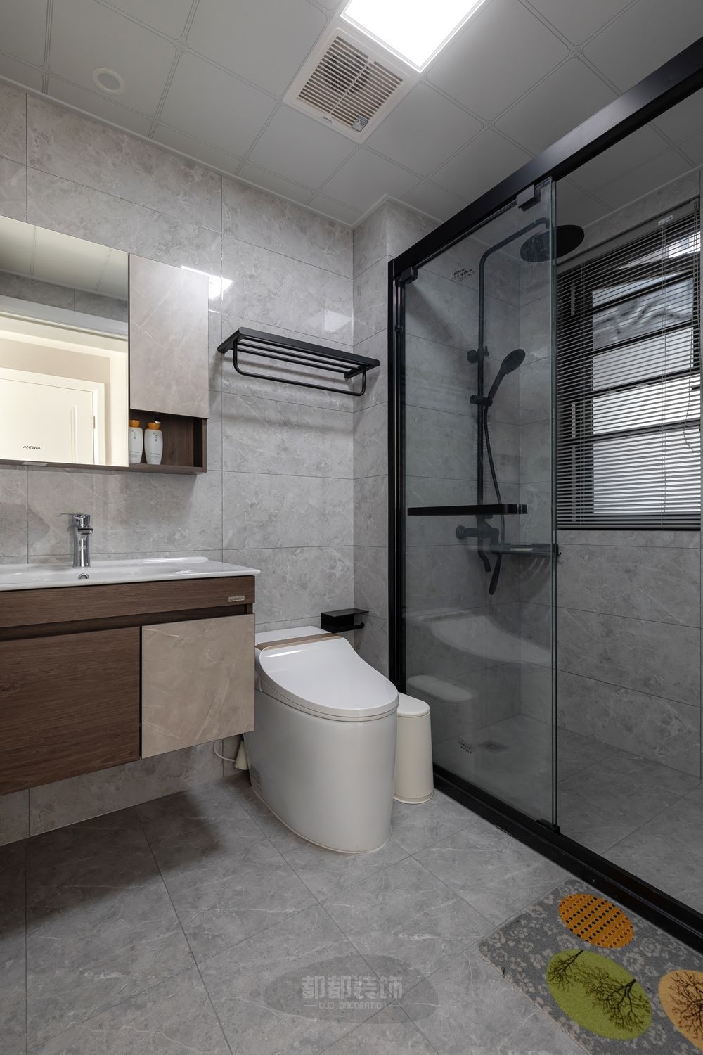▲卫生间灰色为主调,搭配少数木质材料,空间现代化。