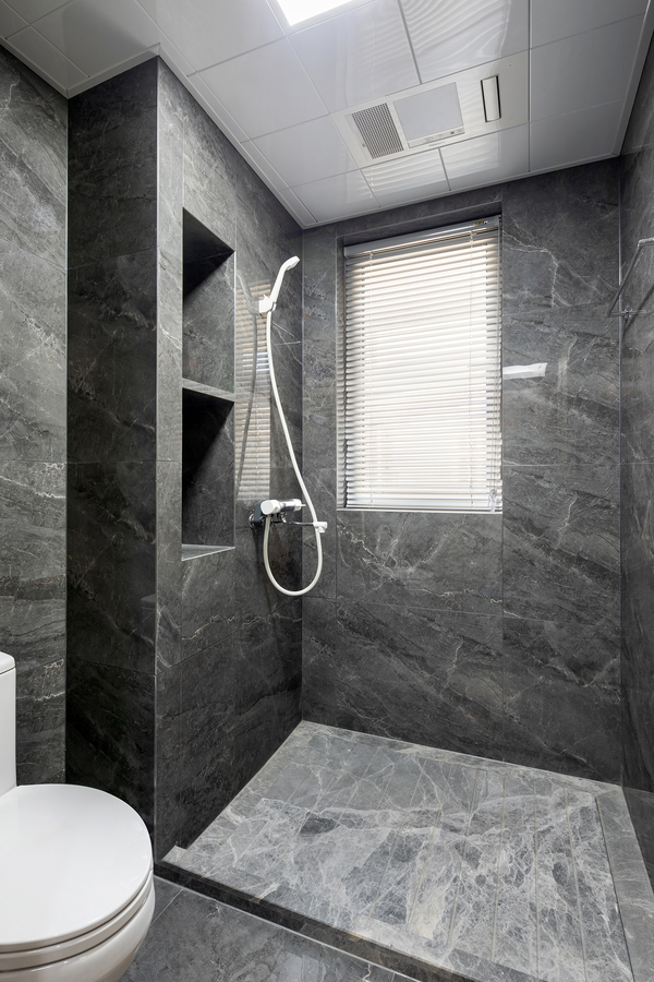 卫生间墙面和地面用瓷砖铺贴,利落干净,简单大方。淋浴是暗藏款,隔断采用一片式无框玻璃隔断,更加简洁时尚,壁龛空间设计合理,用来放置各种洗漱用品,收纳颜值一举两得。