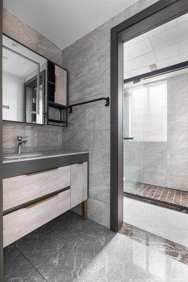 卫生间选择了干湿分离处理,空间划分明确,满足基本的使用功能,边框选用了很有质感的黑色磨砂材质,简约大方。