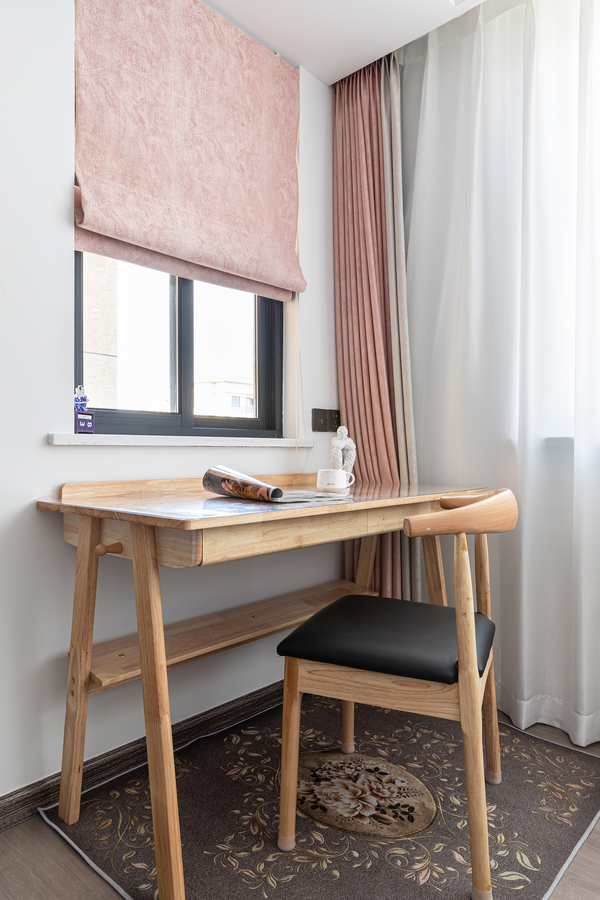 可供阅读学习的地方两面都是窗户,整面玻璃将自然光尽数揽进,沐浴在轻柔阳光之下,温润自然的木质书桌无形中让人更放松