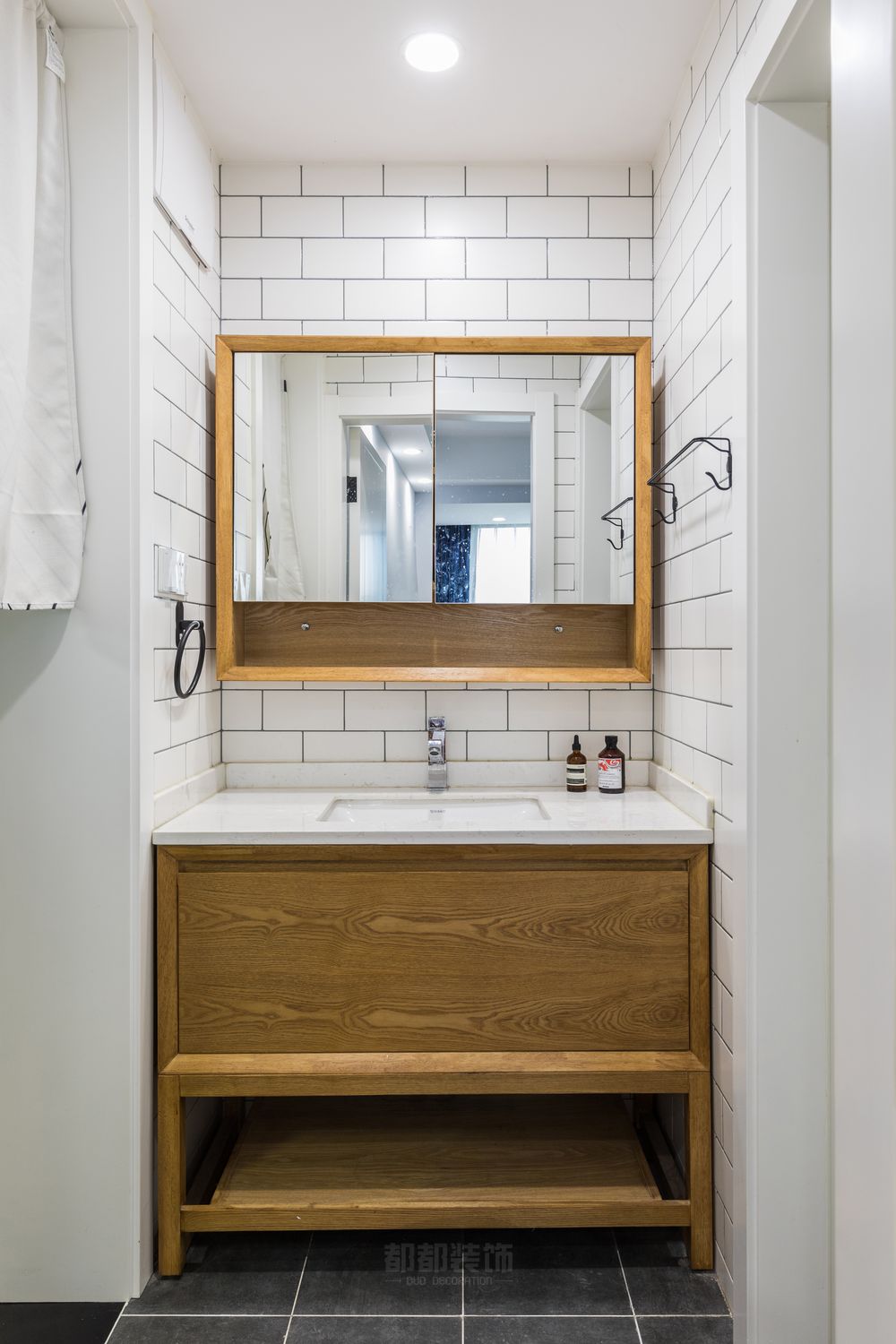 ▲寝卧,选用了蓝绿色作为主墙色彩,与亮眼的飘窗窗帘相映成趣,搭配略带复古的家具柜体,木质储物柜。