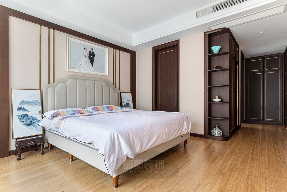 ▲ 卧室,是最好的休息和独处空间。在风格上更为安静温馨,功能性也更强,主卫加衣帽间,同时增设女主人物品展示区,门后设计换洗衣区,并且增设化妆台,使整个空间更加实用。