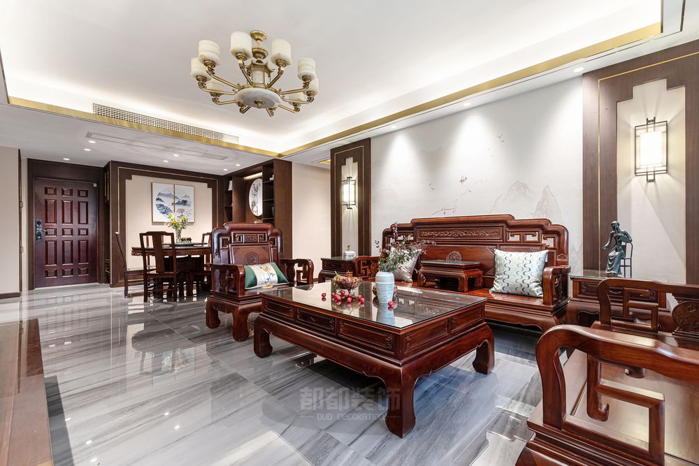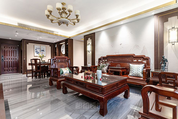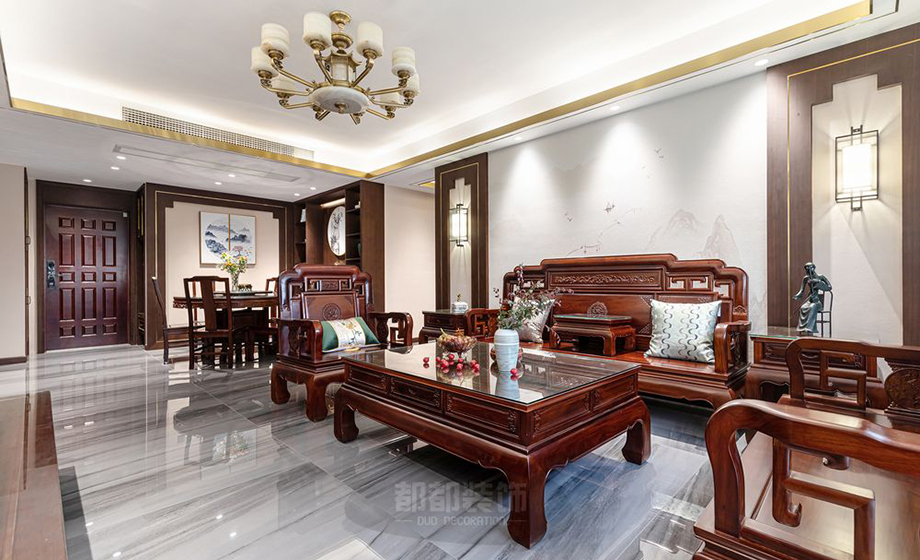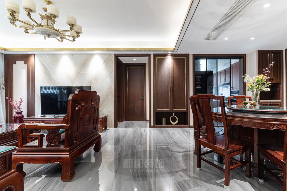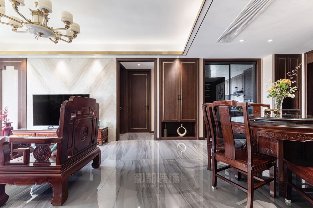▲ 整个空间宽敞疏通,硬装的设计摒弃了传统的复杂与繁琐,将传统文化中的经典元素加以提炼作为设计语言,格调典雅,不同形式的灯光合理利用,使古典元素充满活力,营造出一种温馨典雅的感觉。