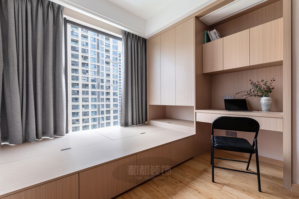 ▲ 榻榻米+衣柜+书桌一体化,让空间功能和利用率达到最高,也是孩子学习休息和收纳于一体的成长空间,等孩子稍微大一些,可以将这个房间打造成既可以喝茶聊天、还能舒展身心的多功能房。