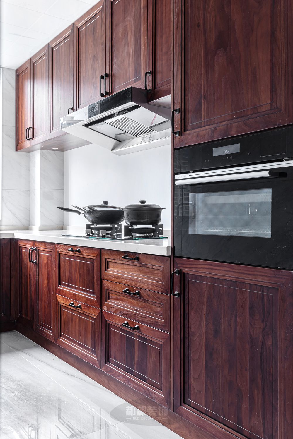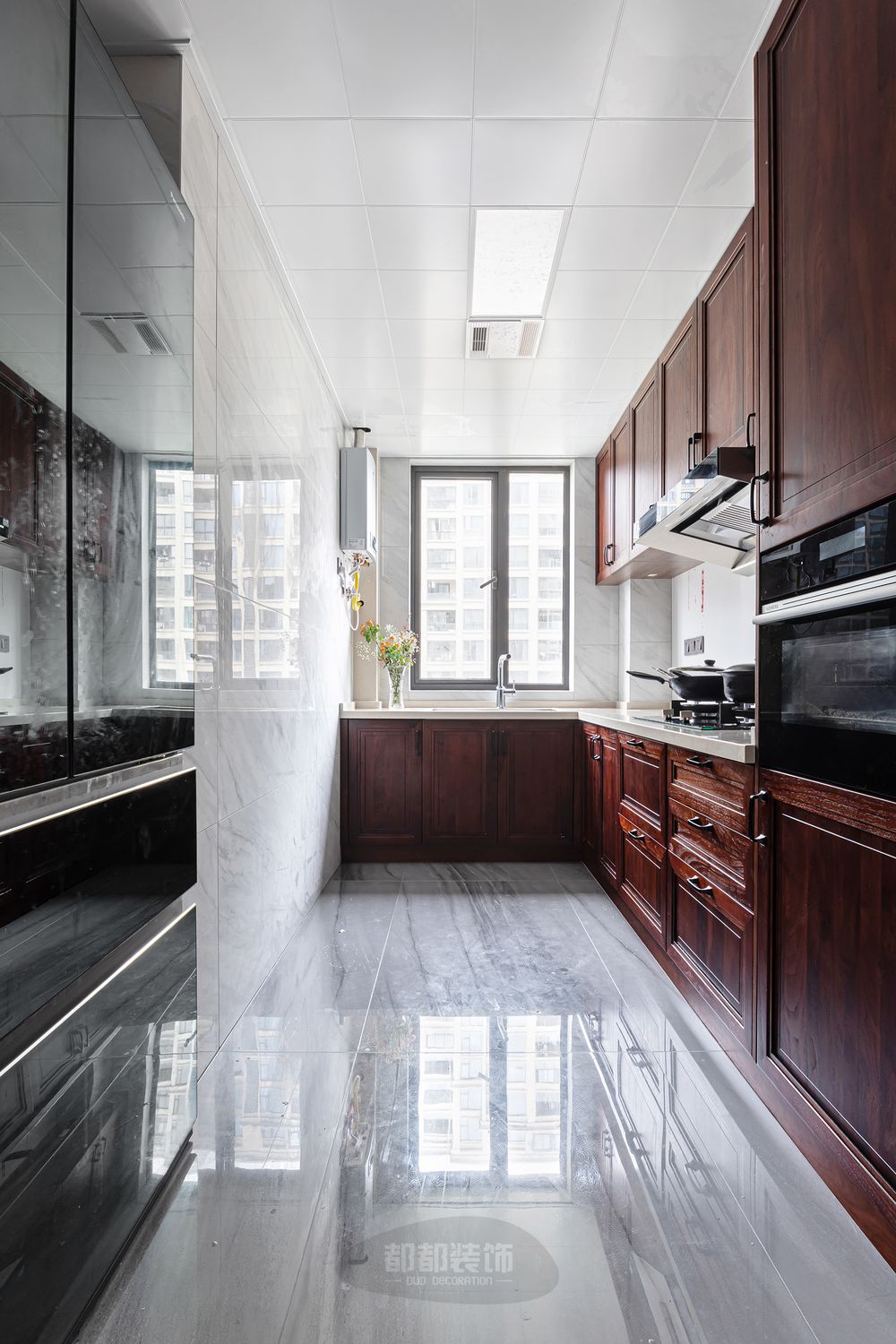 ▲ 厨房面积有限,选择了“L型”厨房设计,布局让空间更加宽敞,水槽在L型顶端,在操作中形成三角区域,操作方便;厨房设计移门,实用的同时,又增加了餐厅的采光