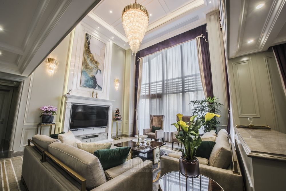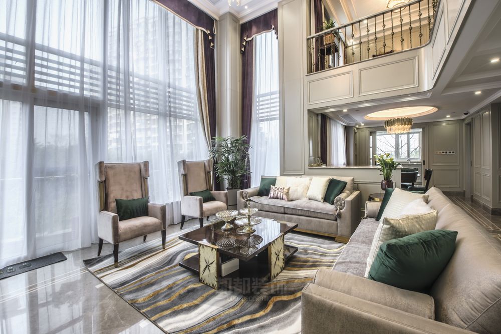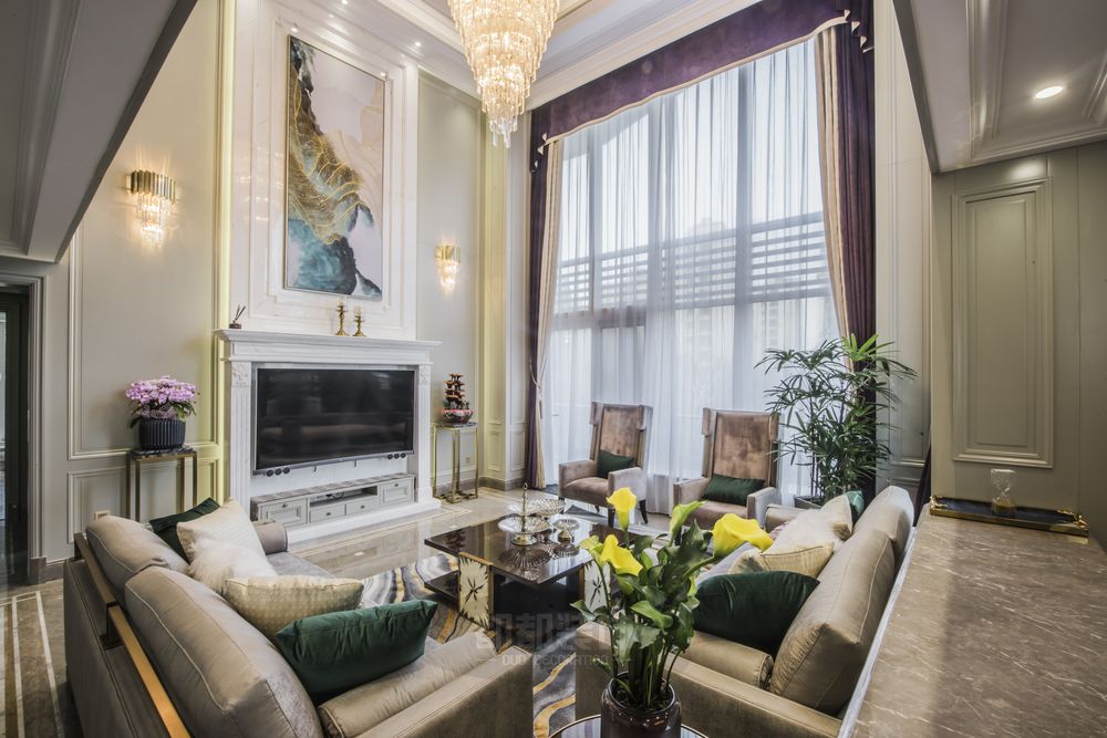 ▲ 映入眼帘的是一幅色彩变幻的水粉艺术画,高雅大气的纱织窗帘在其光间若隐若现地浮动起来,延伸开来的是时而大面积分布、时而细腻的大理石地面,将对称性、平衡性与现代审美的创新性融入其中。