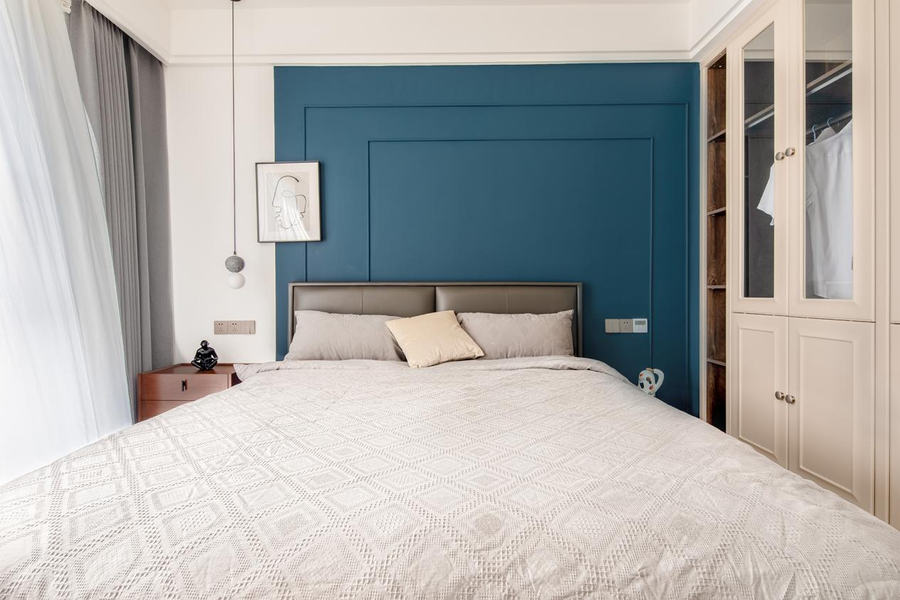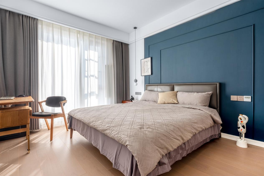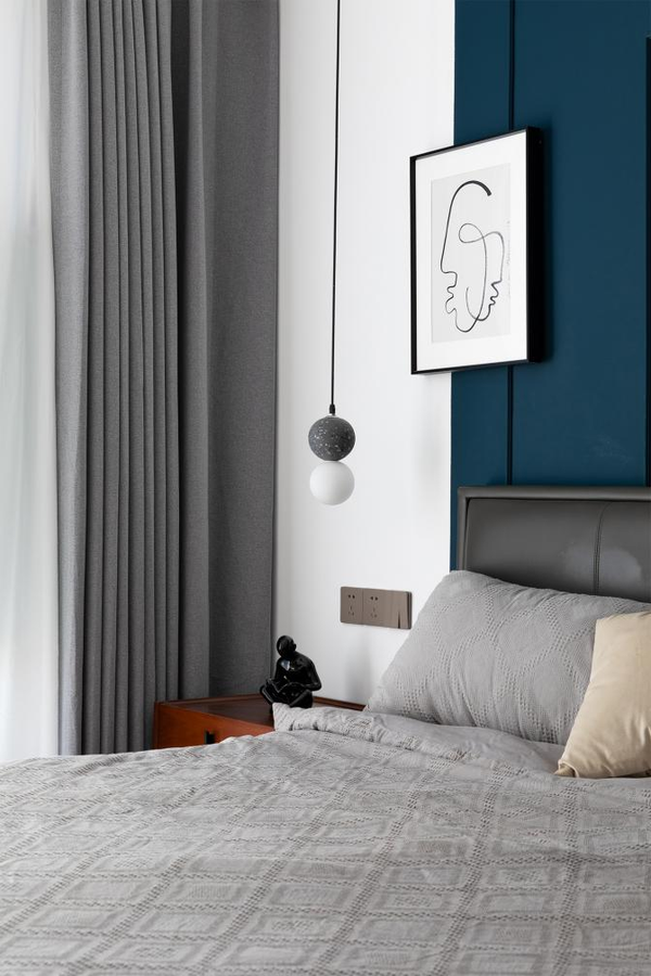 儿子已经高中,卧室的设计偏成熟,但又不失青春感,硬装上多用墙面色块去增强设计感,细节处仅通过一些摆件、画框便让让整个空间显得丰富饱满。