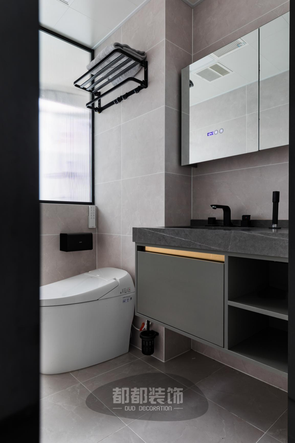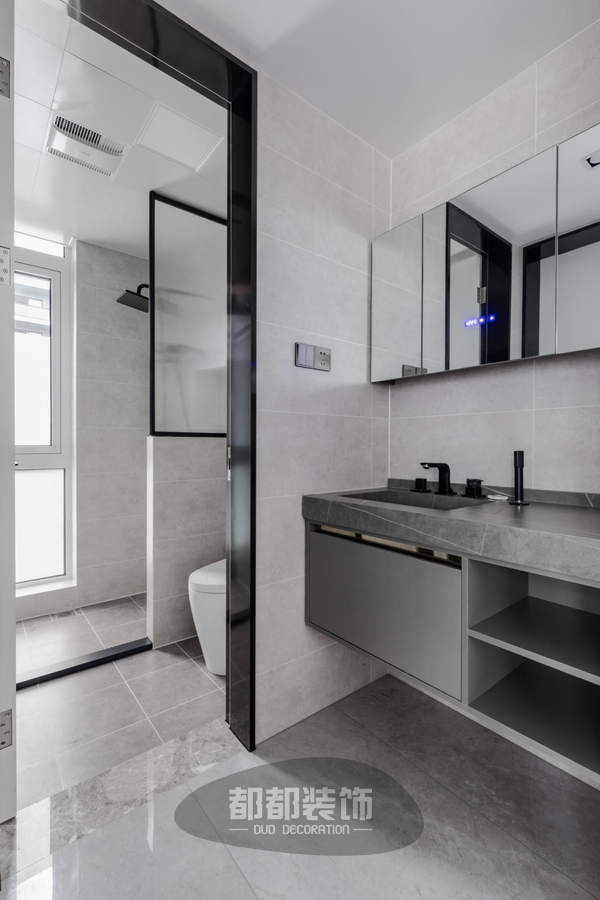 卫生间做成了干湿分离,利用玻璃隔开,既保护了隐私,也保证了空间的美观度和通透感。