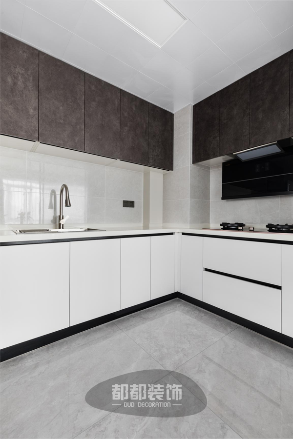 白色作为空间的主色调,使用岩板褐与大理石灰点缀,线条干净利落,打造优雅且有质感的厨房空间。