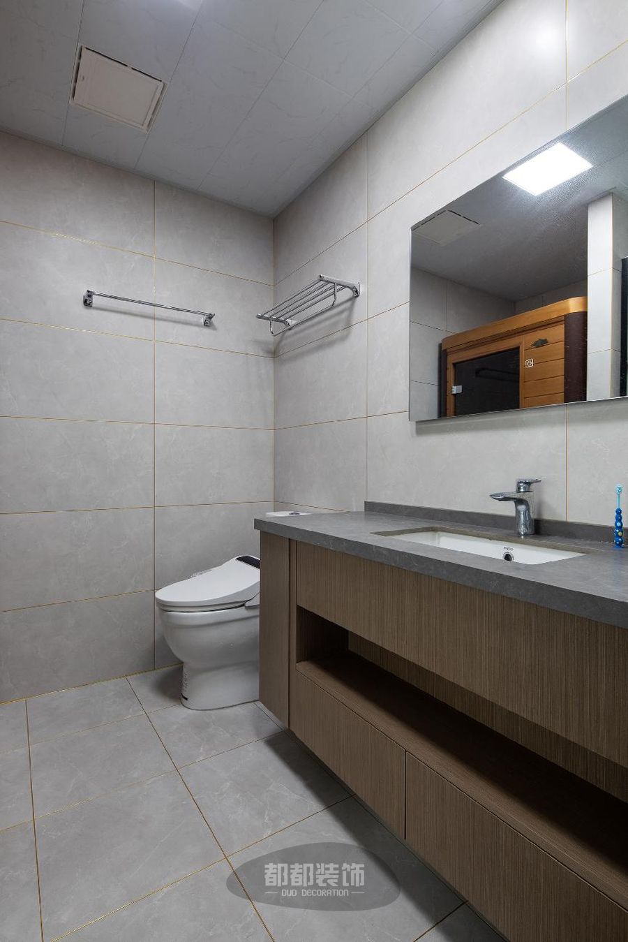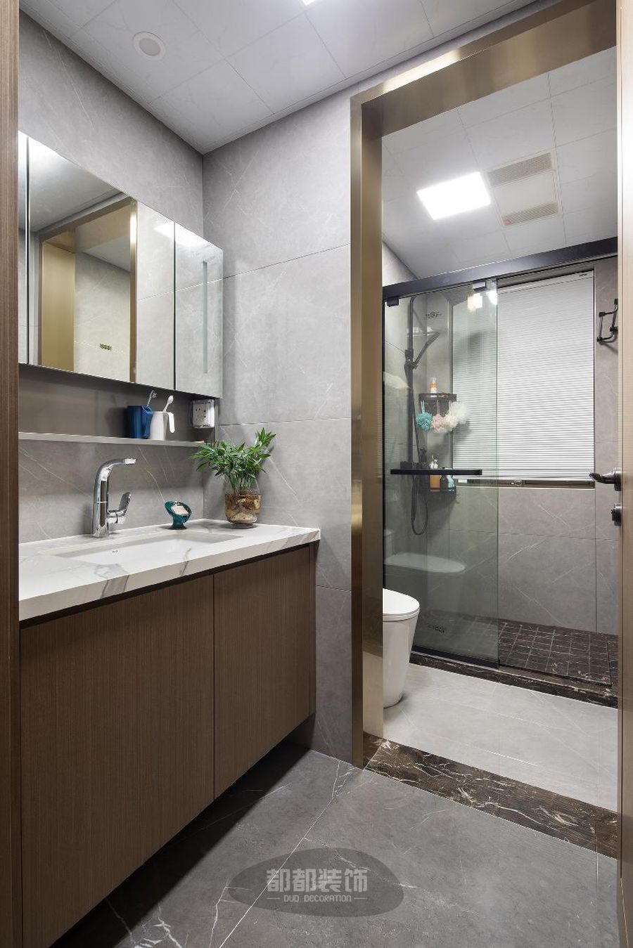 浴室干湿分离,在现有区域内合理规划,实现了实用性最大化,磨砂灰的地板与墙面点缀金色缝线,满满的优雅轻奢感。