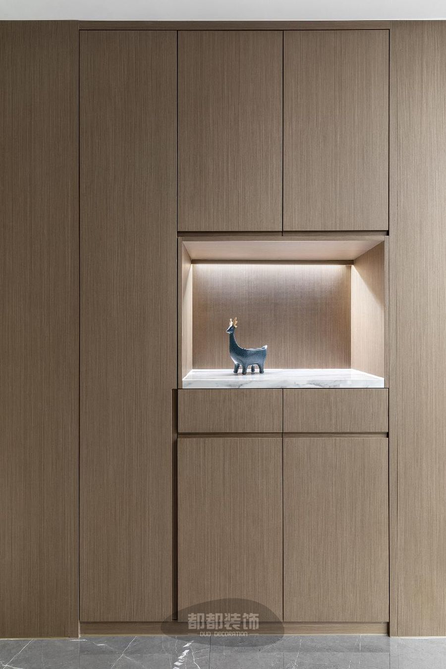入室设计是顶天立地的玄关柜,化繁为简,原木材质+精致简约摆件,轻松营造出雅致舒适的入户感。