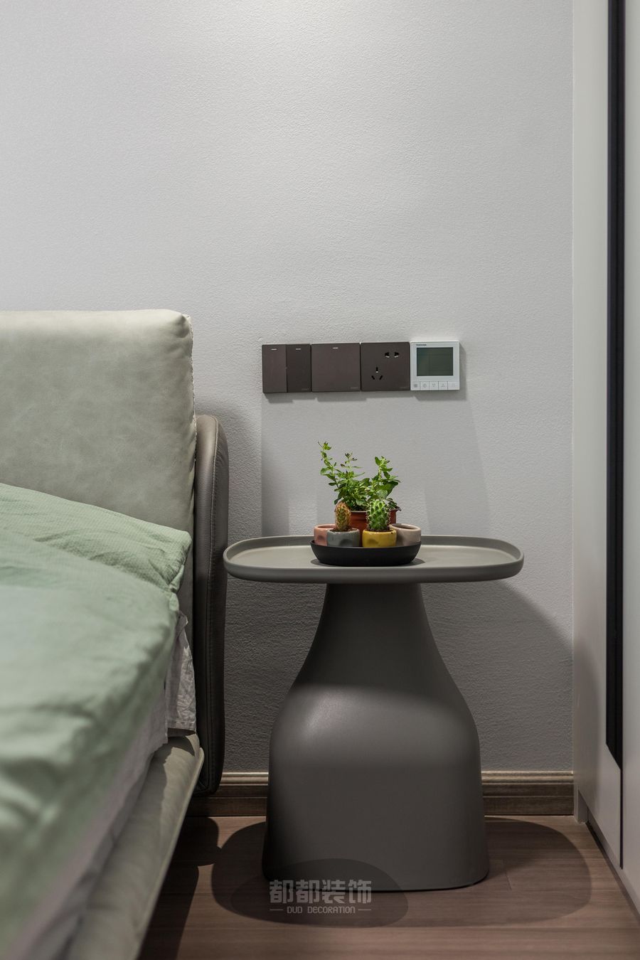 造型独特的床头柜精致有型,创意感十足,上面摆上小绿植,让卧室氛围显得更加清新舒适,提升空间的颜值气质。