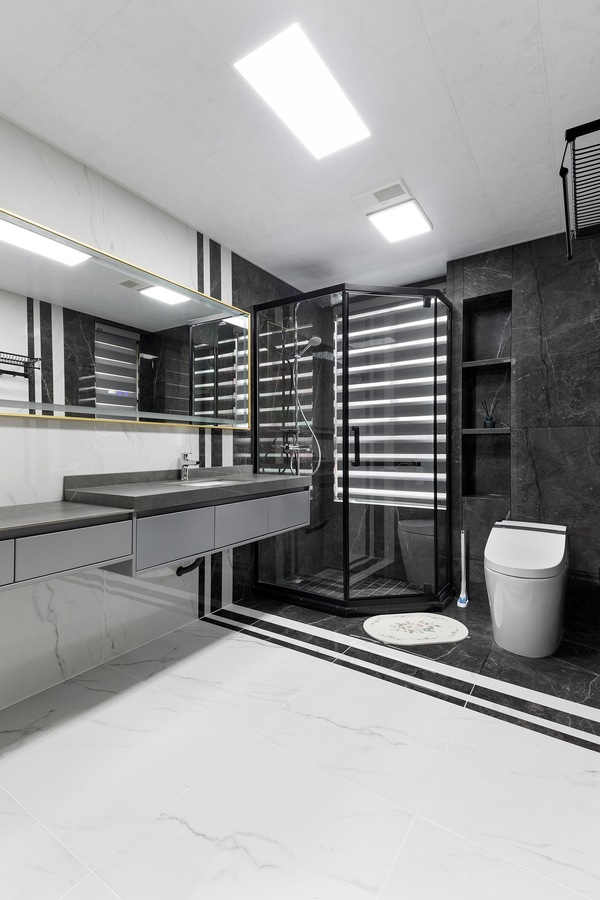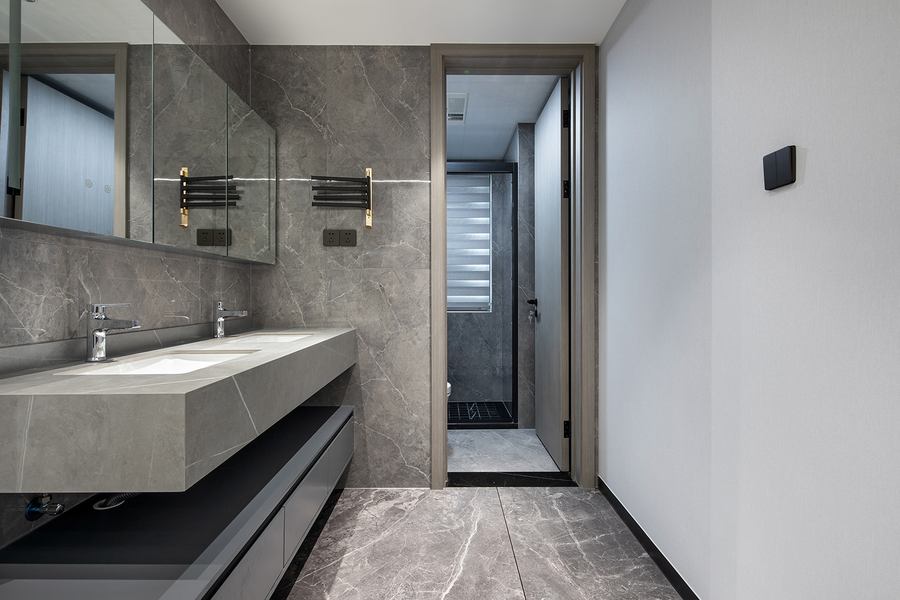 主次卧的浴室都做了干湿分离设计,使得整体简约干净的风格得以延续,黑白大理石经典百搭,壁龛的设计低调无违和的与整个空间融为一体,收纳与美观并存。