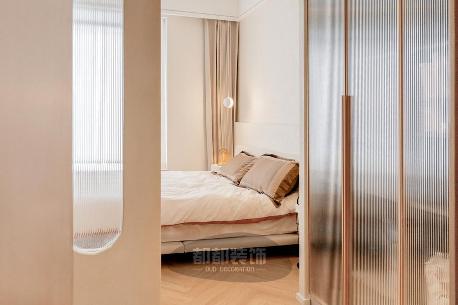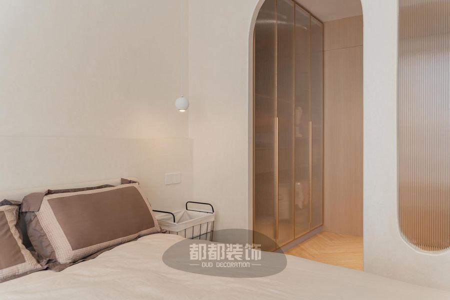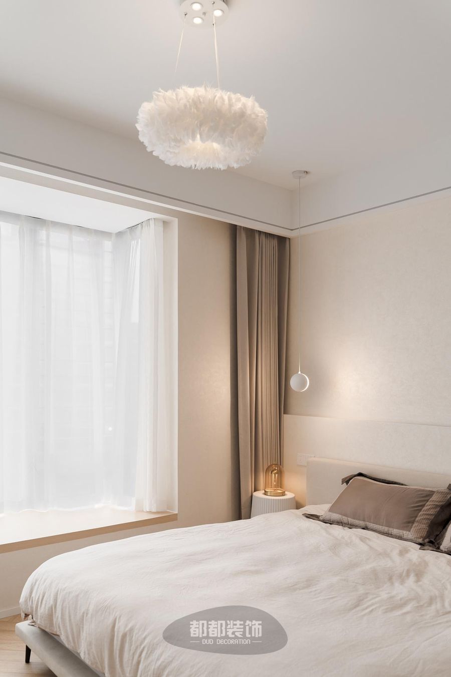 羽毛吊灯、玻璃球灯、床头装饰灯让视觉形成自然而然的递进,一切是那么的恰到好处,将温柔质感尽情挥洒。