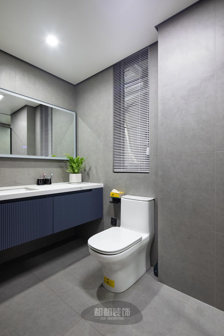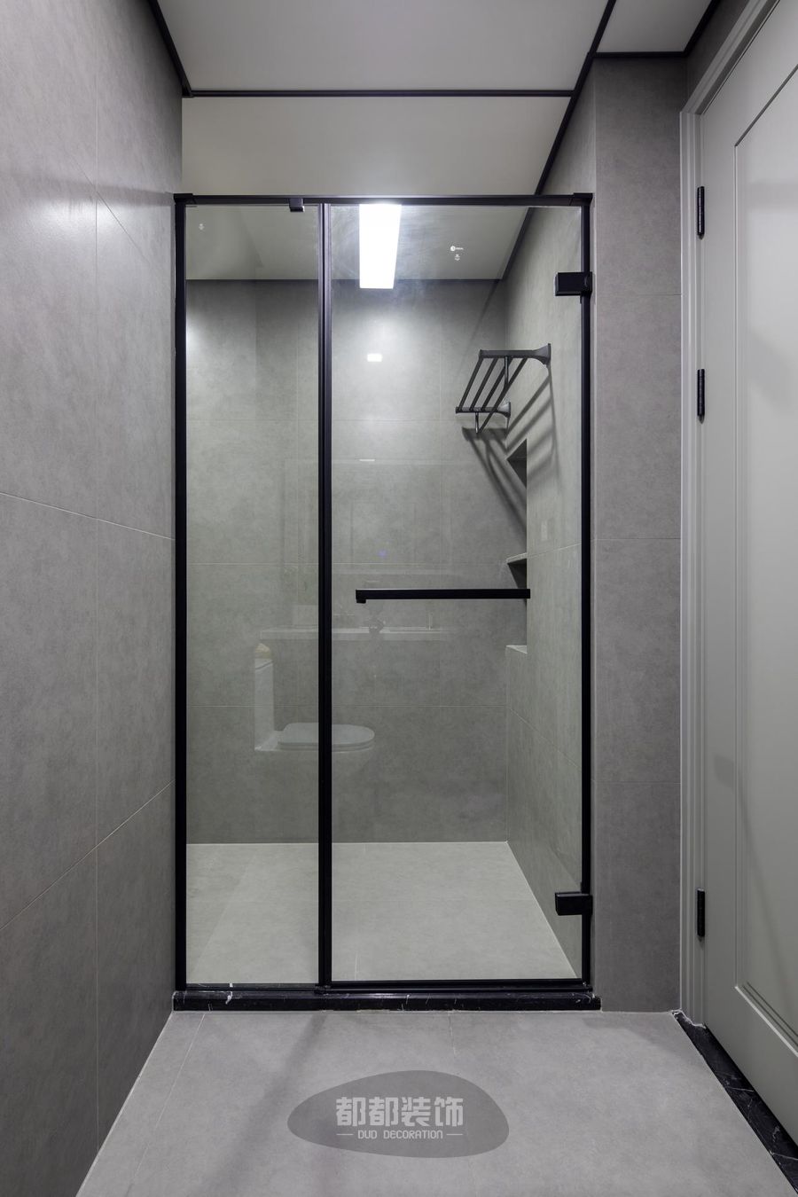 卫浴空间选用了灰、白岩板来搭配,克制而沉稳的色系,带来了更舒缓、静谧的卫浴氛围,透明玻璃移门带来的通透度,也给整体空间注入更多层次感。