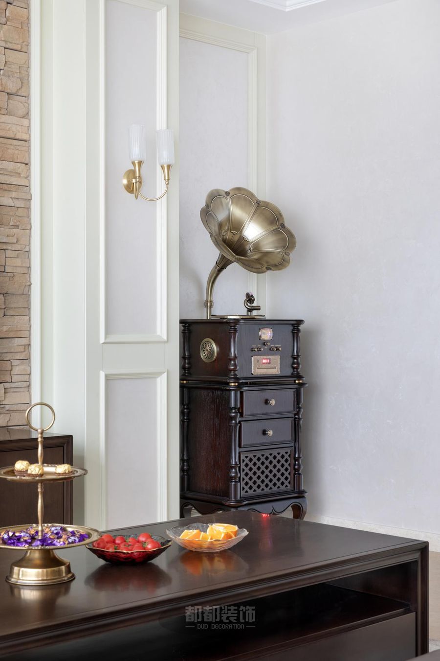 电视背景墙是由带圆边做旧的仿古砖砌成,一砖一瓦都经过了精心的考量,温和的泥土气息恍若蕴含着旧时光的生活气息,一旁立着的老式留声机,音乐悠扬慵懒,闲暇时光躺在舒服的沙发上看一本书,品一杯酒,在这样文艺复古的家居氛围中,仿佛是住进了旧时光中。