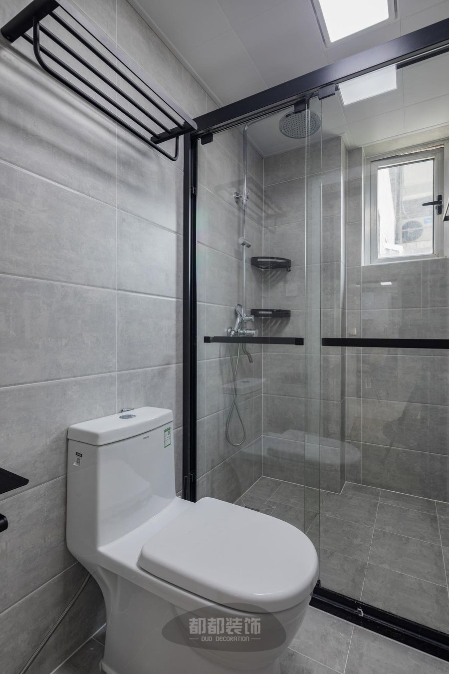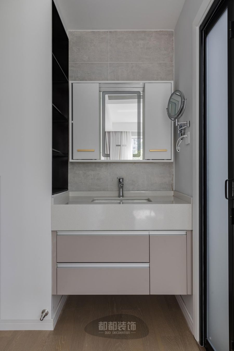 卫生间做了干湿分离,把淋浴区、洗漱区、马桶区这三个功能区域划分明显。地面用的是浅灰色大理石瓷砖,若隐若现的纹理在砖面上更有质感;外观简洁的化妆柜和墙面上的瓷砖相映衬,和谐统—。