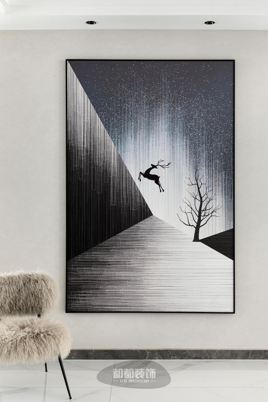 简约低调的空间,挂置黑白抽象装饰壁画,为我们呈现出一种独特现代的高级感。