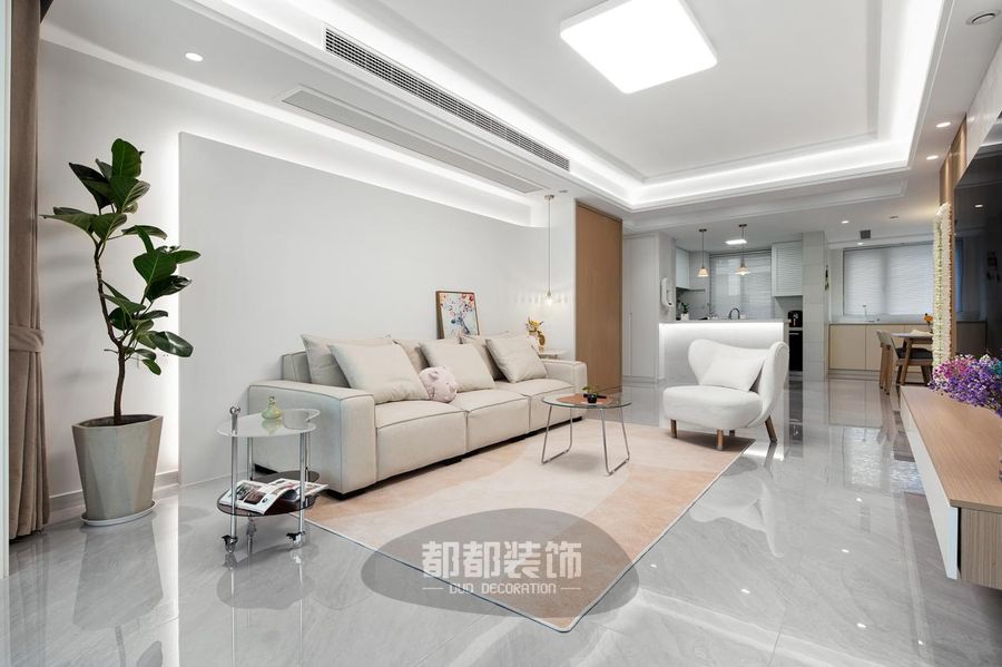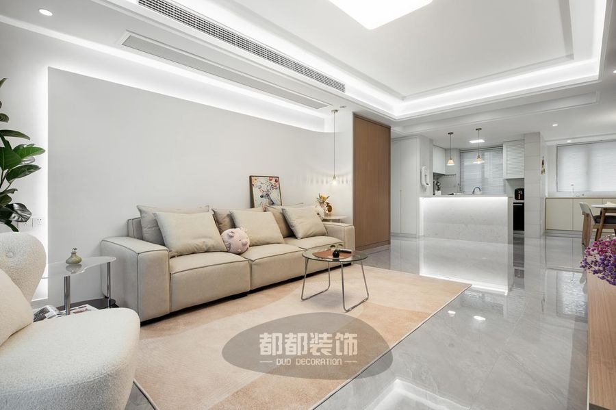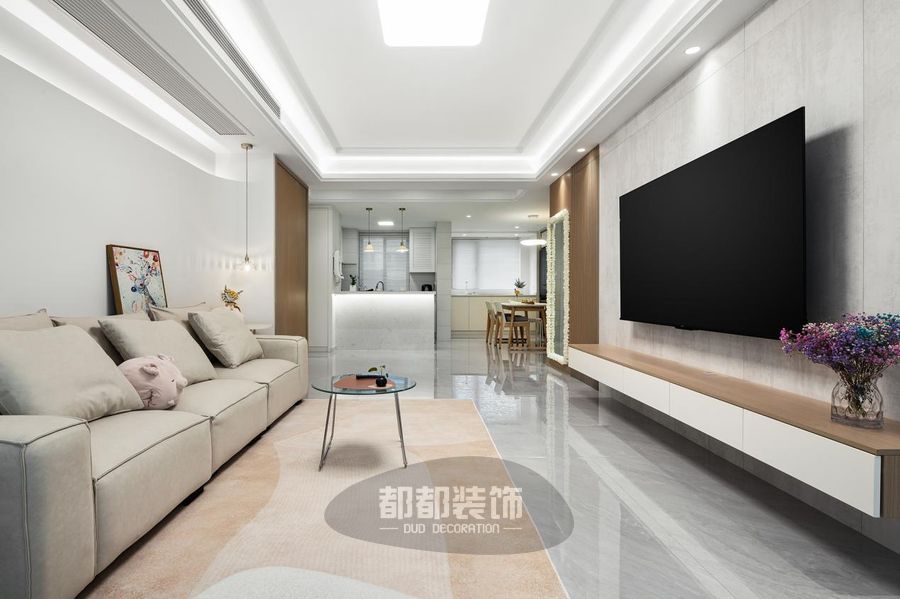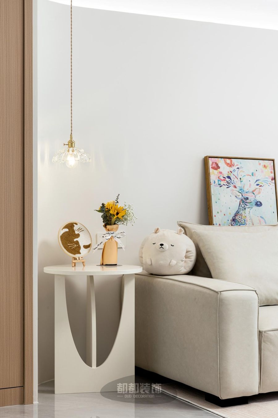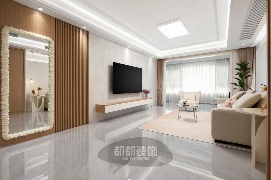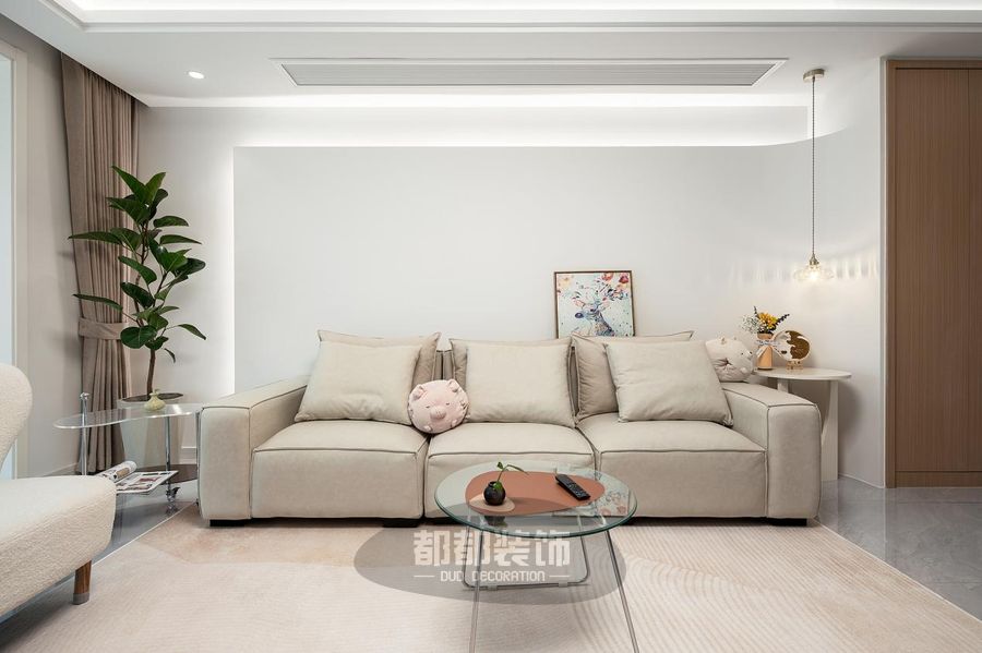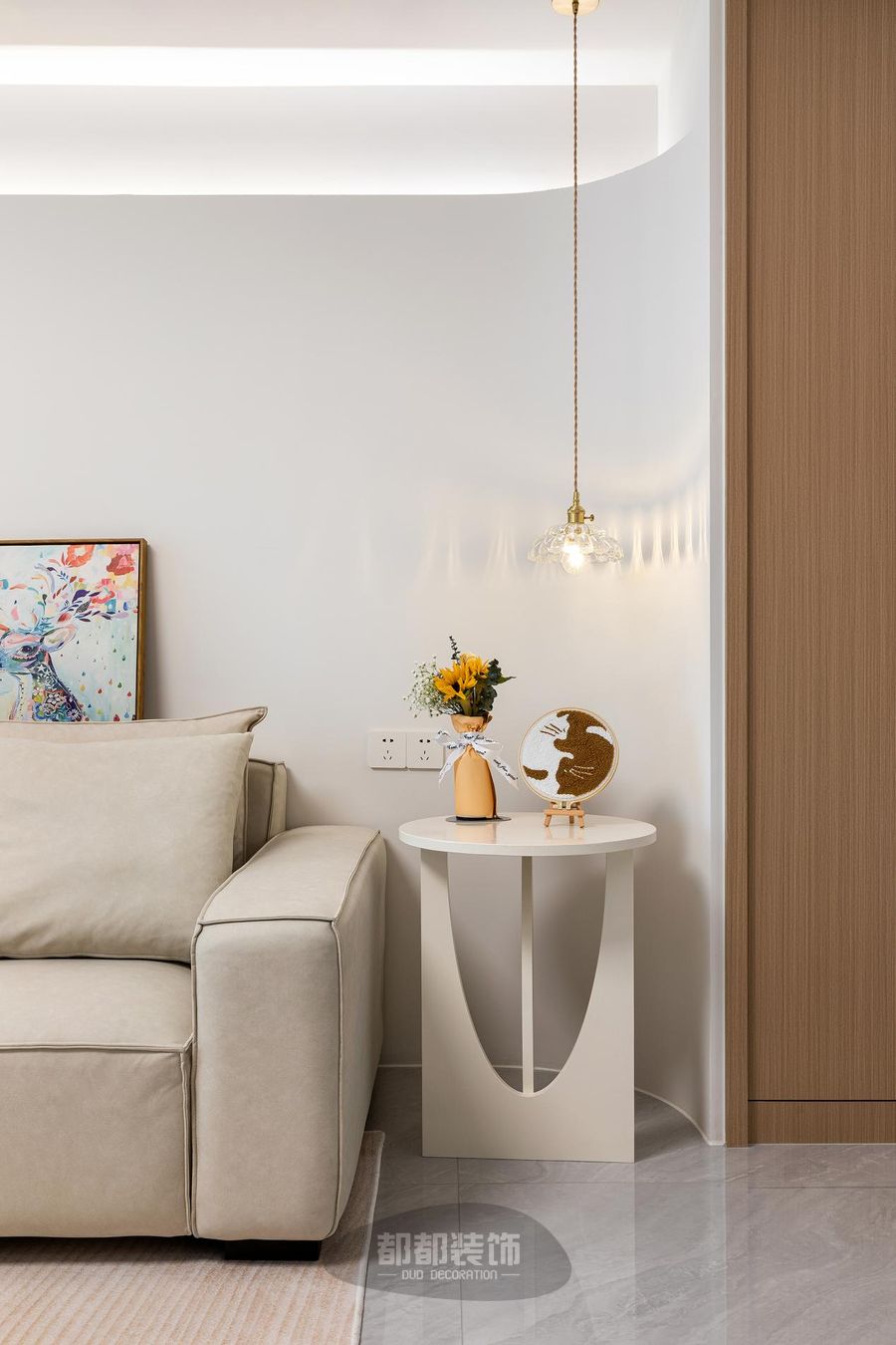 客厅秉承舒适简约的理念,米色与木色相融,为空间增添温润优雅感,表现出了温柔而又治愈的力量。
