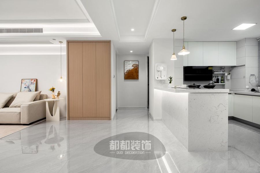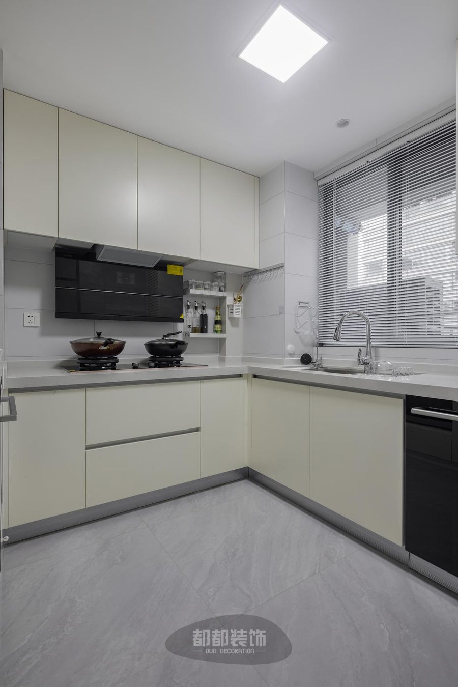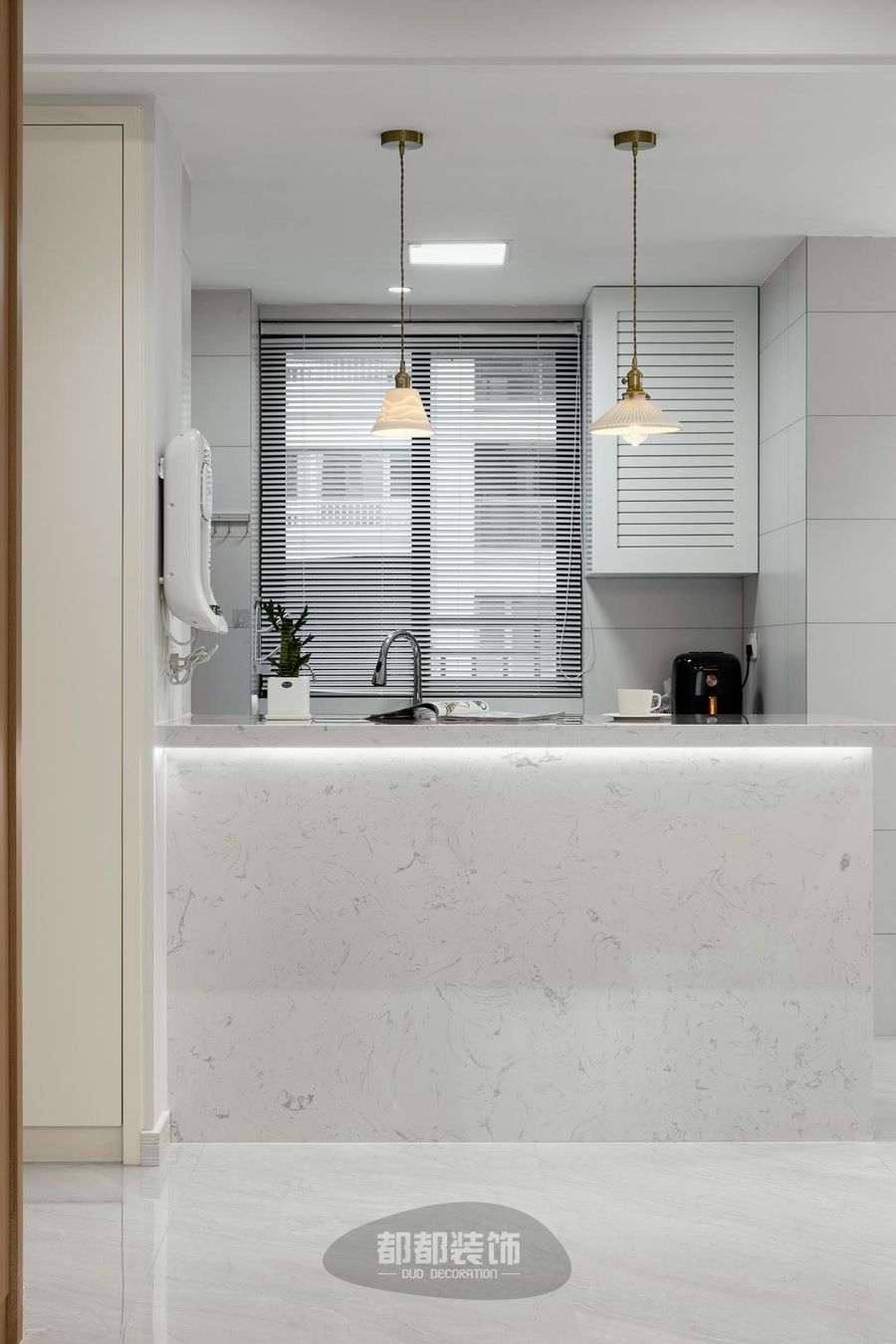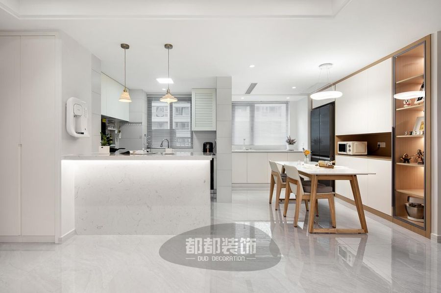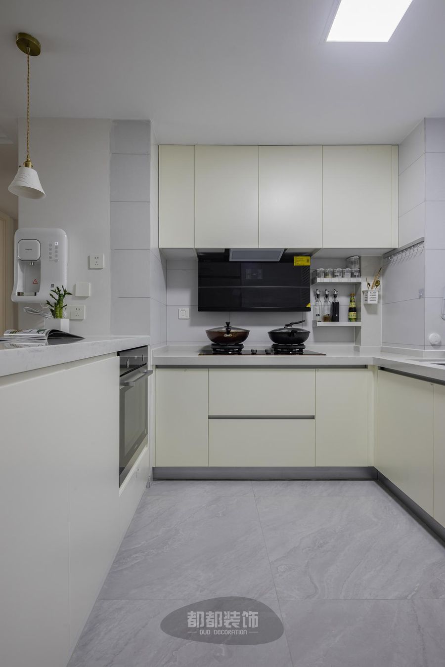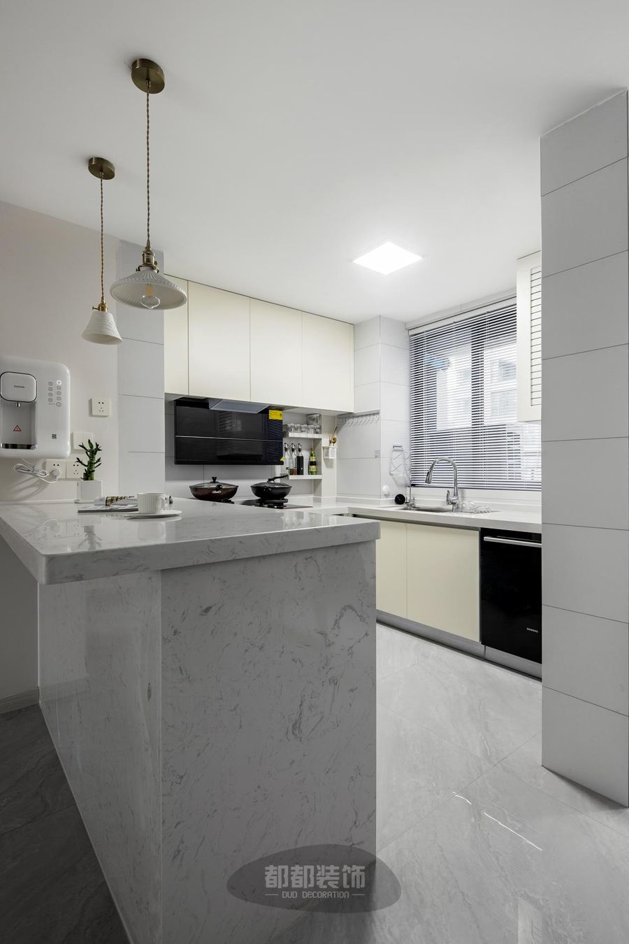 算上吧台呈现U型布局,完美解决了厨房的两个转角,让转角也实现了空间利用。