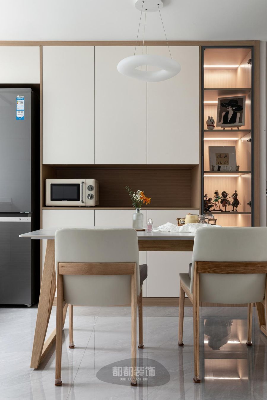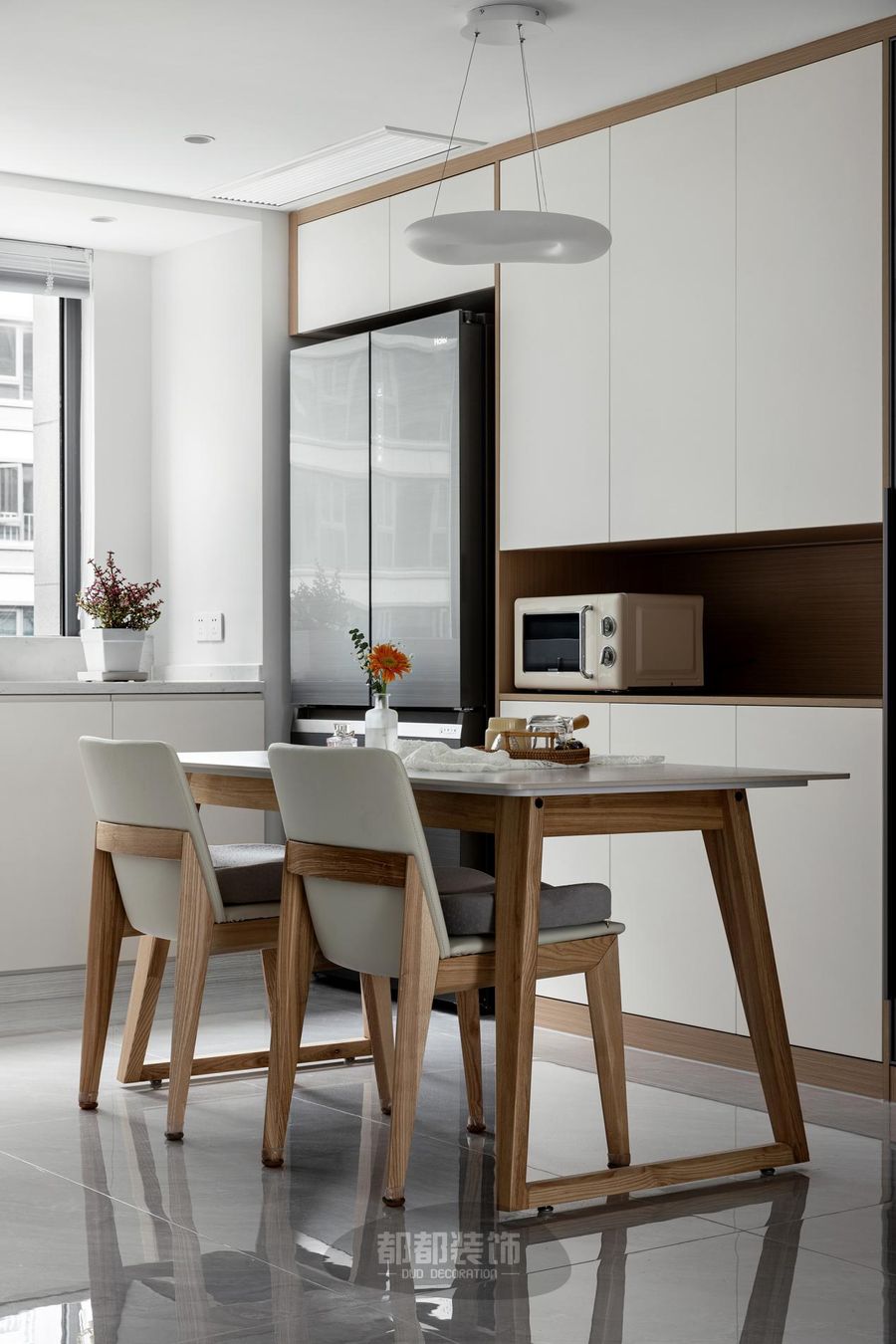 餐厅区域采用了开放式设计,原木餐桌椅将温暖与情怀倾注,业主特地选了应季的花束,生机盎然,倍增用餐时的气氛。
