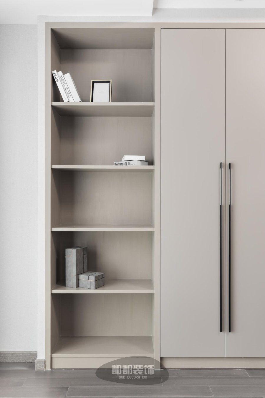 衣柜采用“有藏有露,八二”原则,柜体开放式与封闭式结合,八分藏——易乱的衣服袜子、无美感的大型床上用品;二分露——好看的摆件、经常用的遥控器。