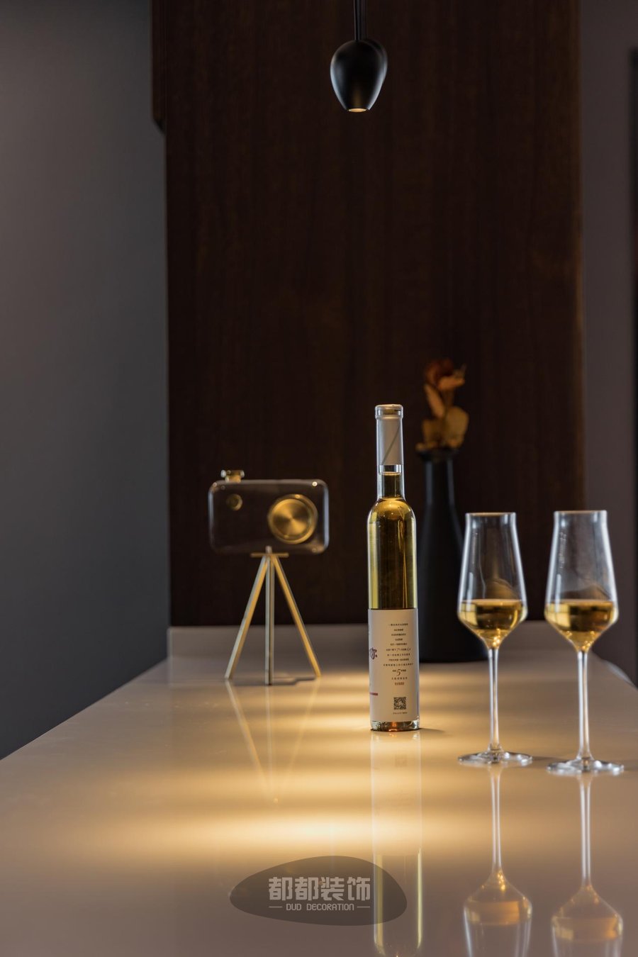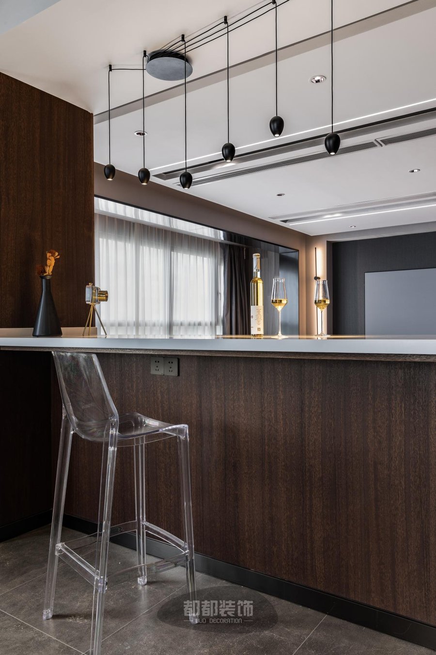 设计初期时,全屋木饰面的方案不太符合谢女士期望,整体温润的木色多少会让人觉得少了份层次感,后来通过多次的调整,采用部分木饰面分割,将空间进行了合理的分隔,加入岩板、钢艺等元素进行调和,形成更为舒适、通彻的视觉,最后的效果还是不错的!