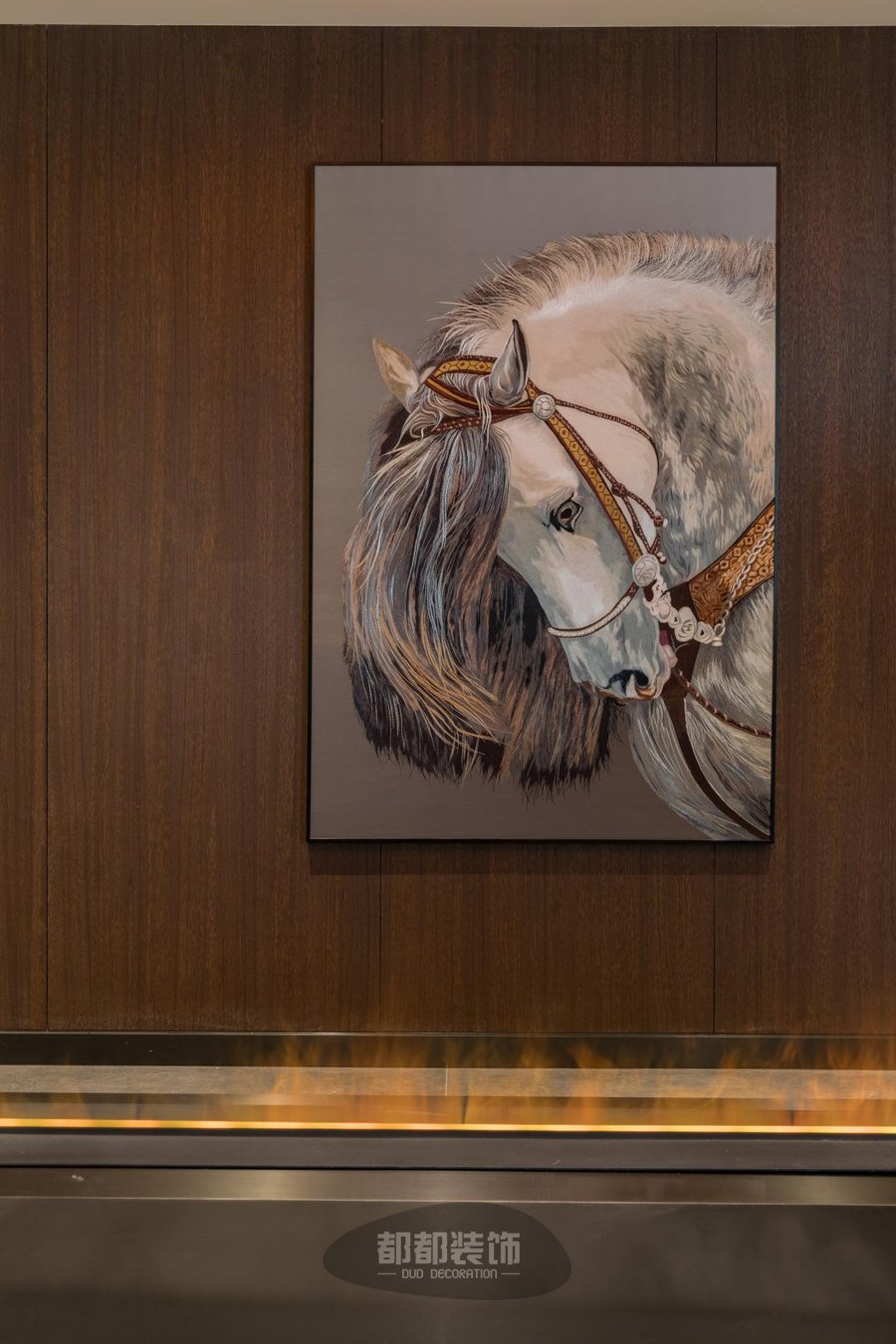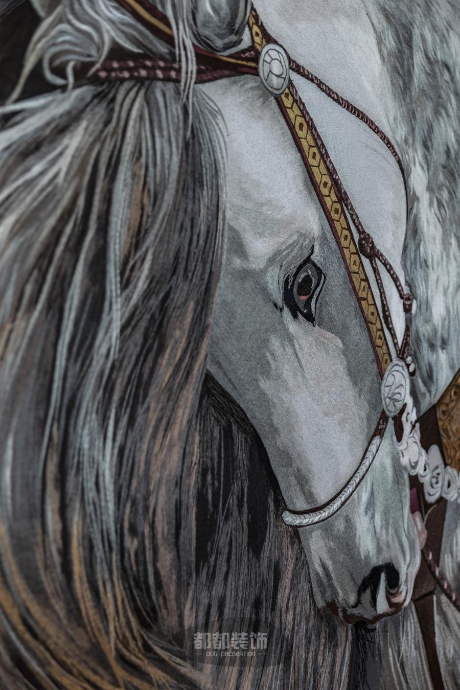 色彩饱满的白马油画与木质的稳重自然,它们之间的融合与平衡带来一种自然的宁静感。