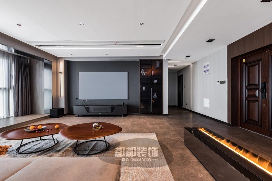 沙发旁放置的电壁炉,插电就可以享受到轻盈舞动的火焰,富有动感,温暖同时带有一丝浪漫;仿真火没有燃烧物燃烧的气味这个副作用,看上去质感更“轻”,更接近简约风,让房间达到化龙点睛作用,使整个房间看上去灵动,富有生气。