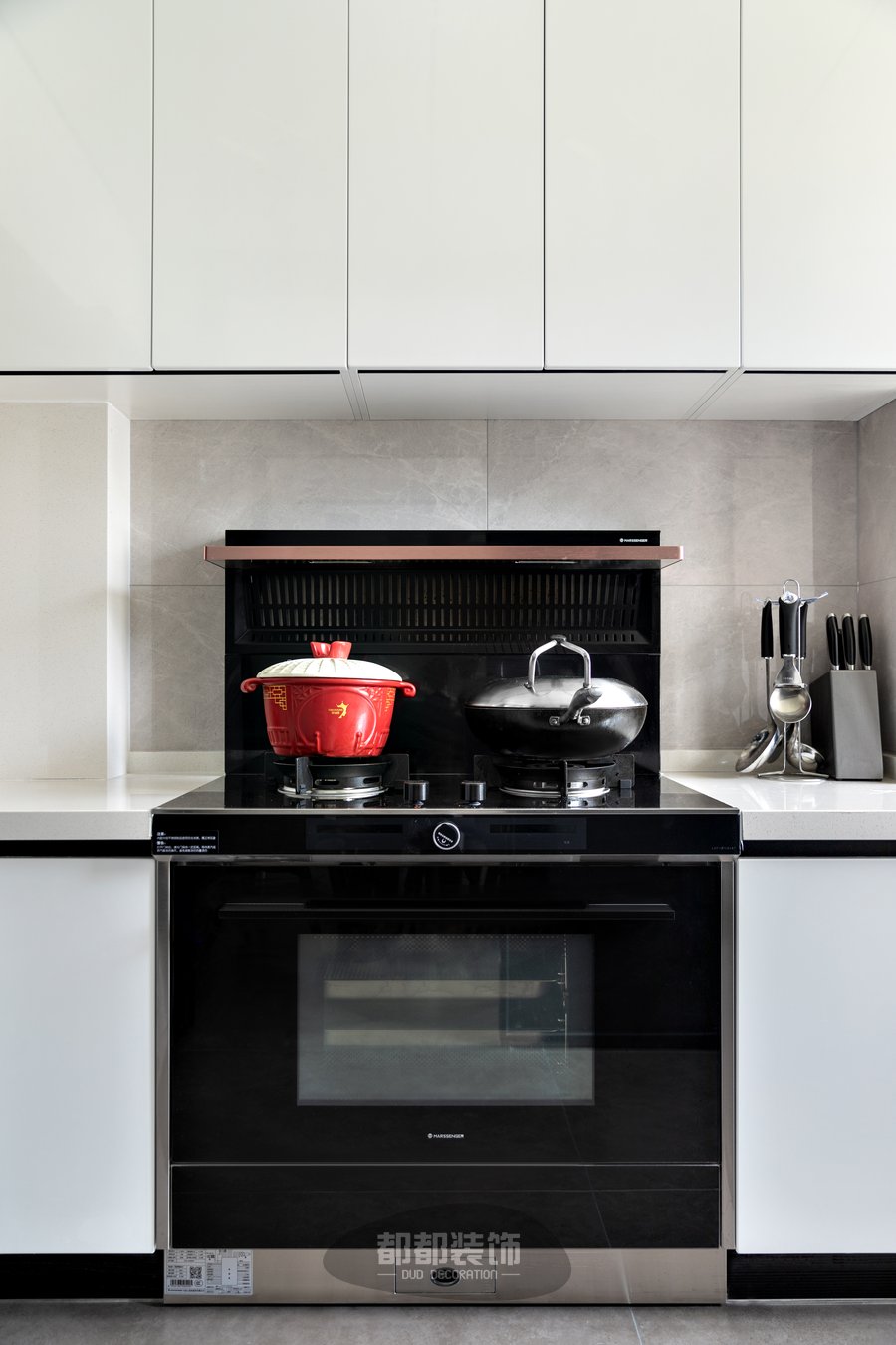 颜值控们看到这样简洁的厨房,相信都要按不住腿了吧?第一次来张总家厨房的朋友都有一种莫名的舒适感,那是因为张总家用一体式集成灶代替了传统笨重的吸油烟机,黑色的机身外观,为整机增添了活泼的气息,加上玫瑰金镶边,顿显尊贵气息,科技感满满,非常符合年轻人的审美。