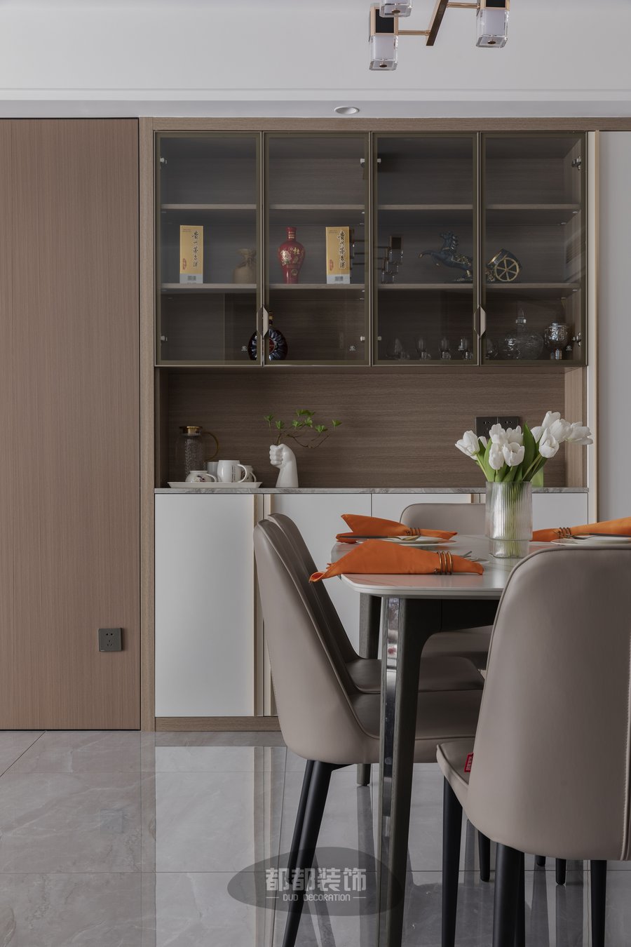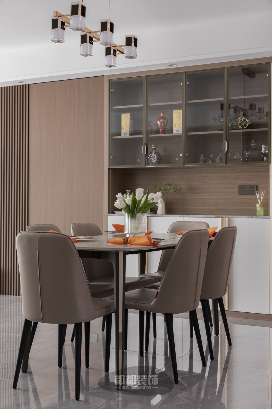 餐厅空间多用木质和软皮来烘托整体的奢享品质,平滑的皮质与柔韧线条的餐桌极具精典雅致,在此与亲朋好友与阳光邂逅一场下午茶,在软糯甜品的滋润下,畅言叙话,配以阳光下的各种反光,为难得的欢聚时光闪闪发亮。