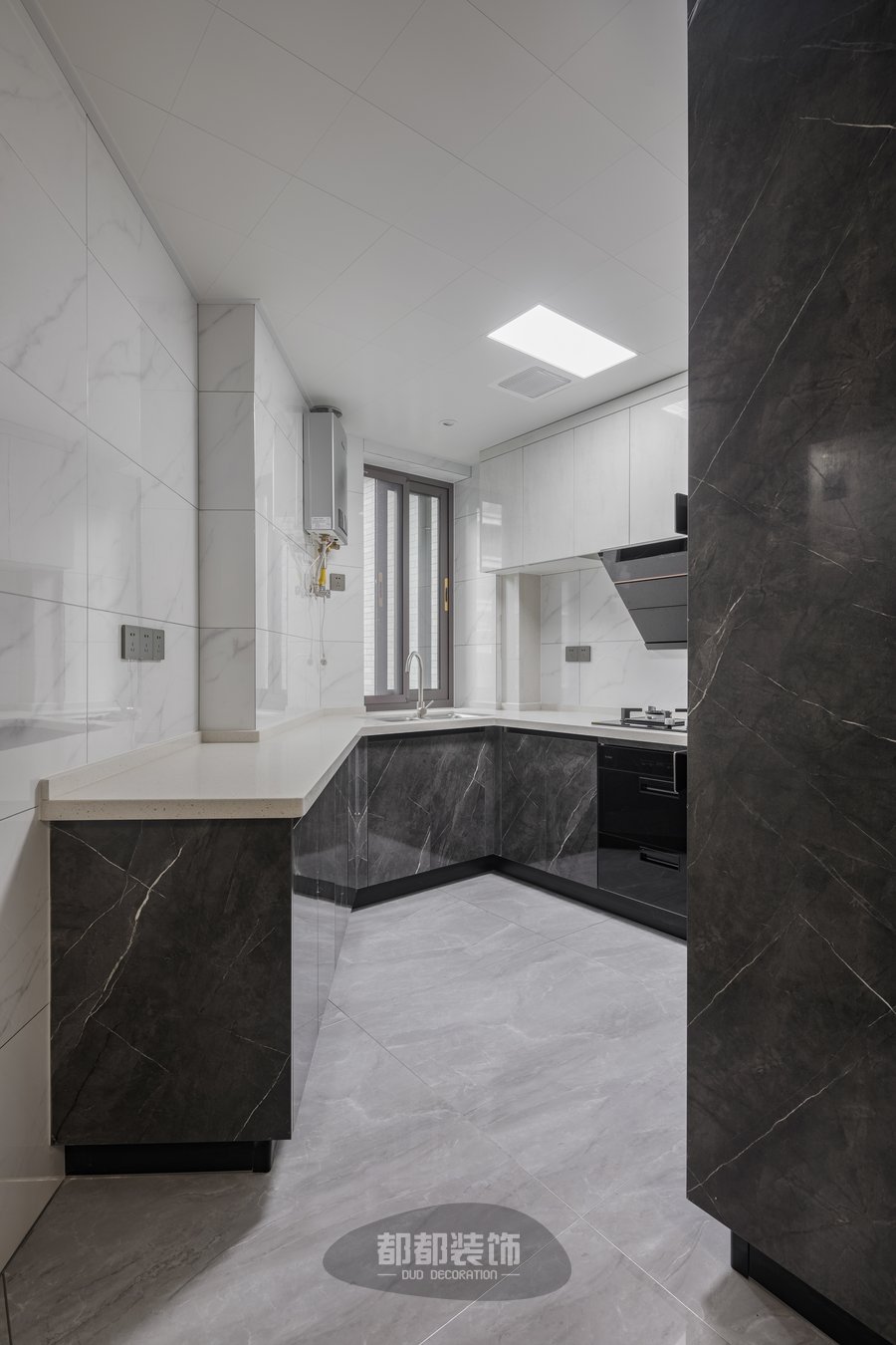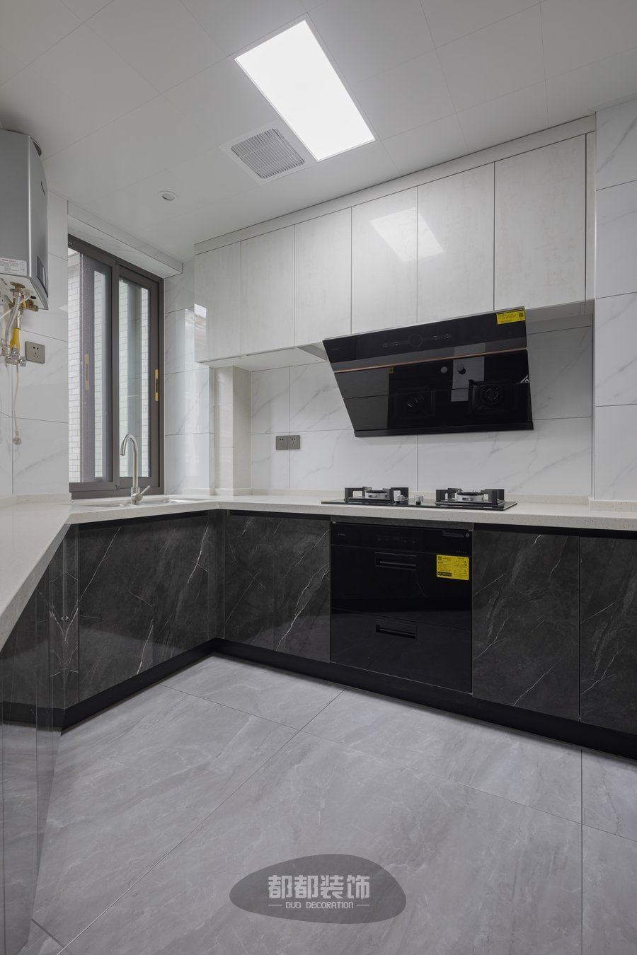 厨房是少见的多边形空间,让做饭有趣不枯燥,装修主材日新月异,厨房地面使用石塑地板,有特殊的防滑性,既不怕水又能阻燃,满足了周女士厨房想用木地板又不敢用的纠结。