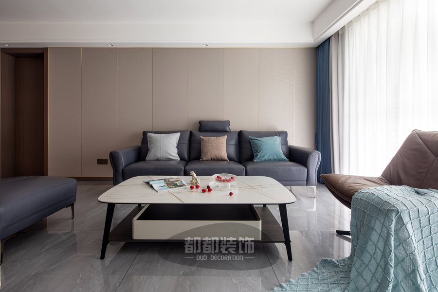 客厅整体以柔和灰棕系打底,用活力清爽的色块做点辍,大理石茶几提升整个空间的精致感,朝西南面玻璃落地窗,光线非常充足,阳光可以直射到厨房和客厅,具有天然的杀菌功能,也,利于植物的生长,每天能看到傍晚的日落变化,四季都有不一样的景致。