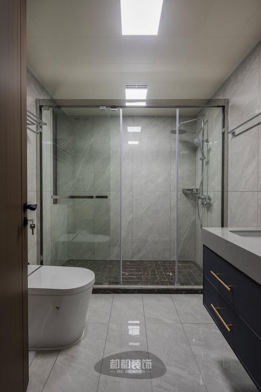 卫生间是方正的格局,马桶间与淋浴间入是分开的两个小空间,马桶间的面积以能满足其使用要求即可,多余的面积都让出来给客厅玄关过道,便于大件家具和物品的进出,马桶安装了智能感应灯,夜间如厕不摸黑,暧调光线不消除睡意。