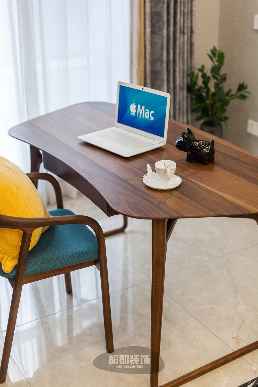 书桌运用精致而考究的材质肌理,整体统一而又有区分的线条,共同勾勒一个雅致书香气的温馨场景。