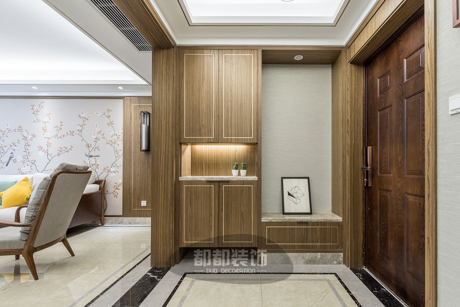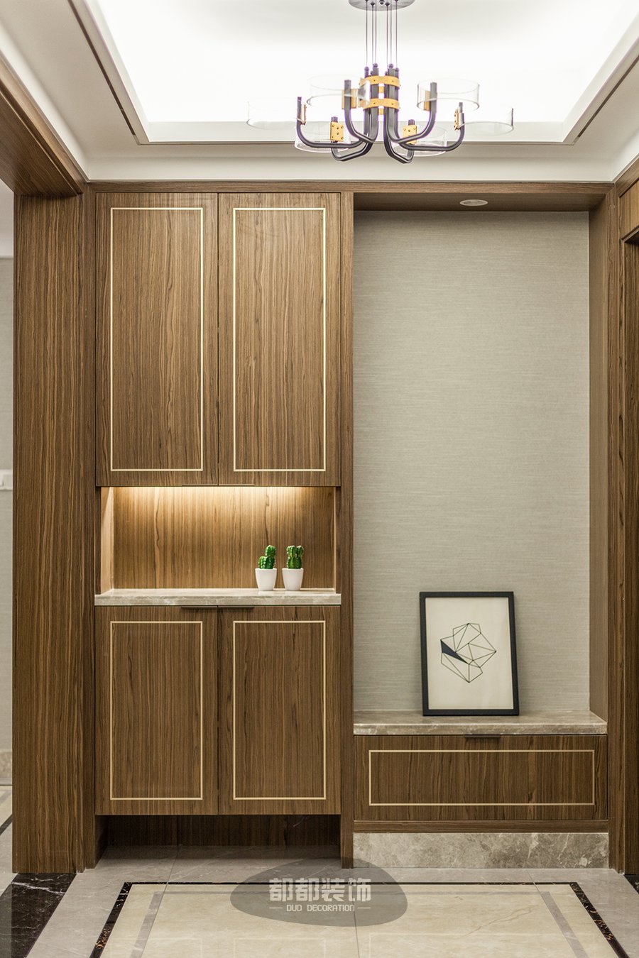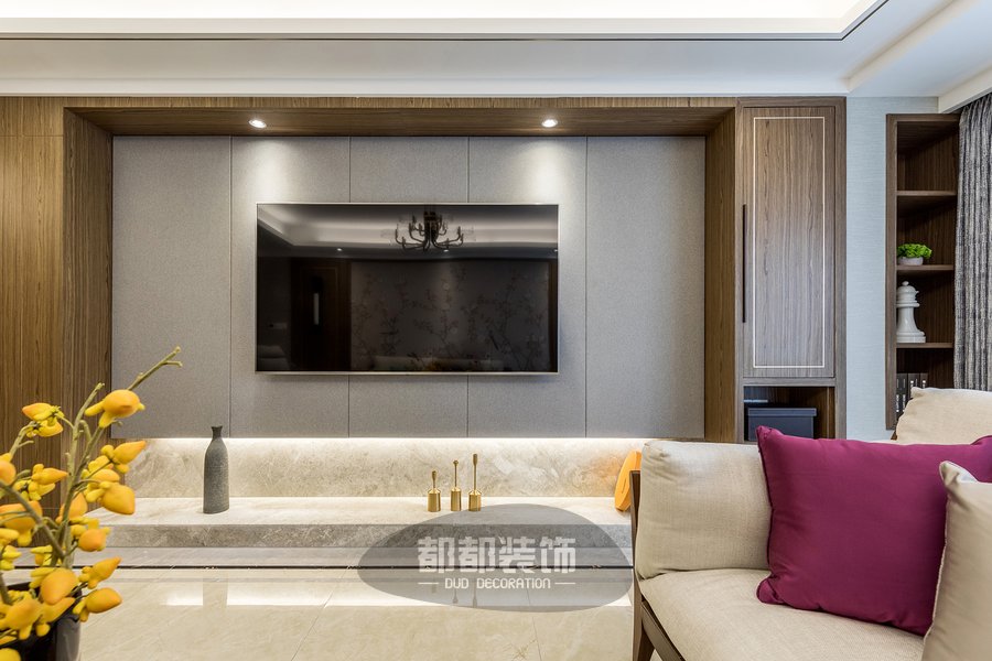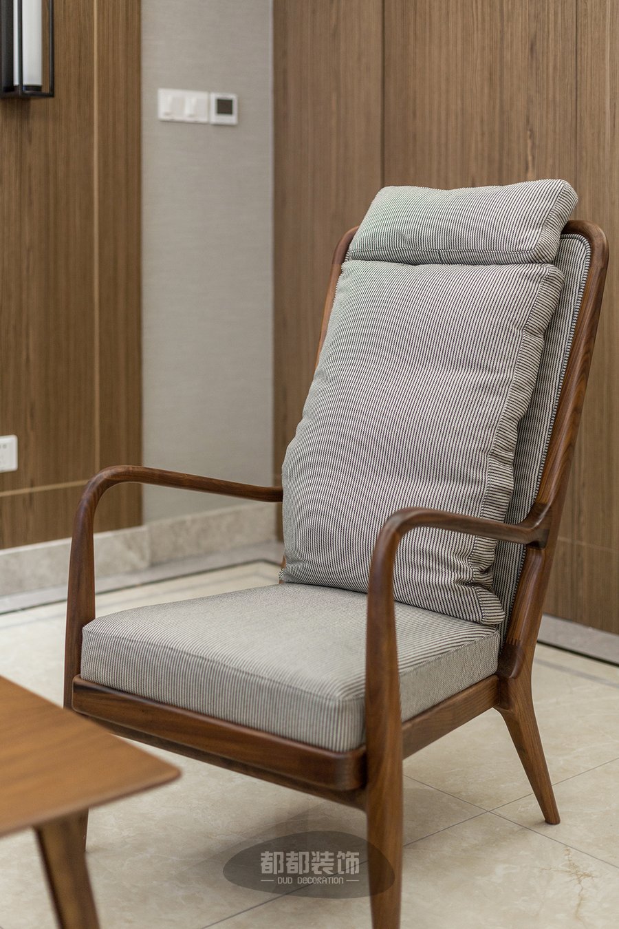连贯的木色,点缀的大理石,柔硬有度,是生活的感悟,背景墙的线条和排放,像有节奏的音符。