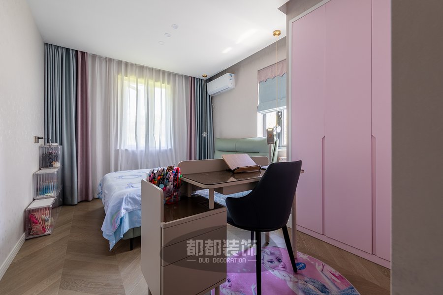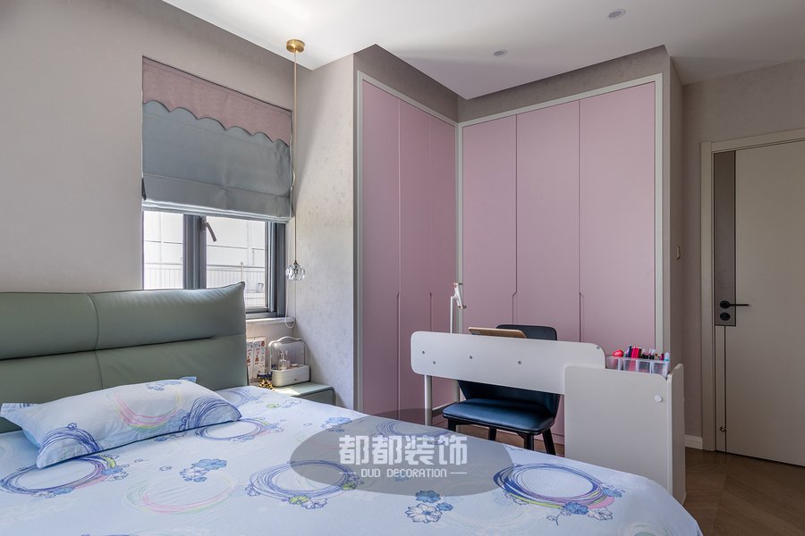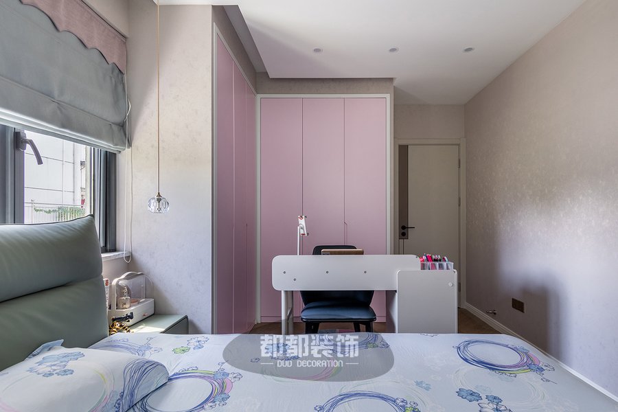次卧以简约线条为基调,淡粉搭配原木打造宁静雅致的休憩空间体验,利用低彩度的配色方式,让空间更加舒服,缓缓躺下到舒适的梦乡,感受内心柔和放松的力量。